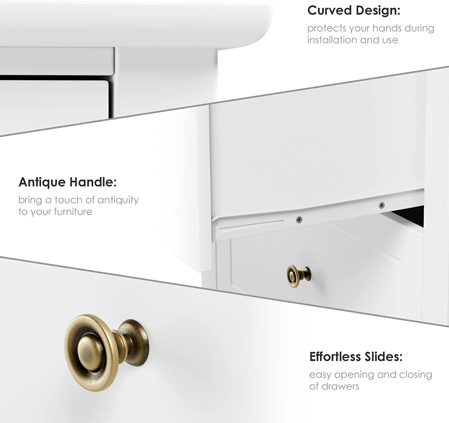 〖 EXQUISITE & COMFORTABLE 〗The four corners of the top of chest of drawers are provided with curved arcs to avoid accidental injury during installation and use. The handle is also exquisitely polished, and we always pay attention to the exquisiteness and comfortable use of the product.