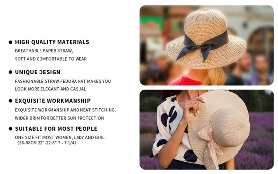 • Foldable and packable:The straw sun hat can be folded up and put into suitcase or handbag for beach holidays, cruise, travel, safari or other summer outing.