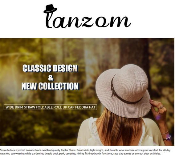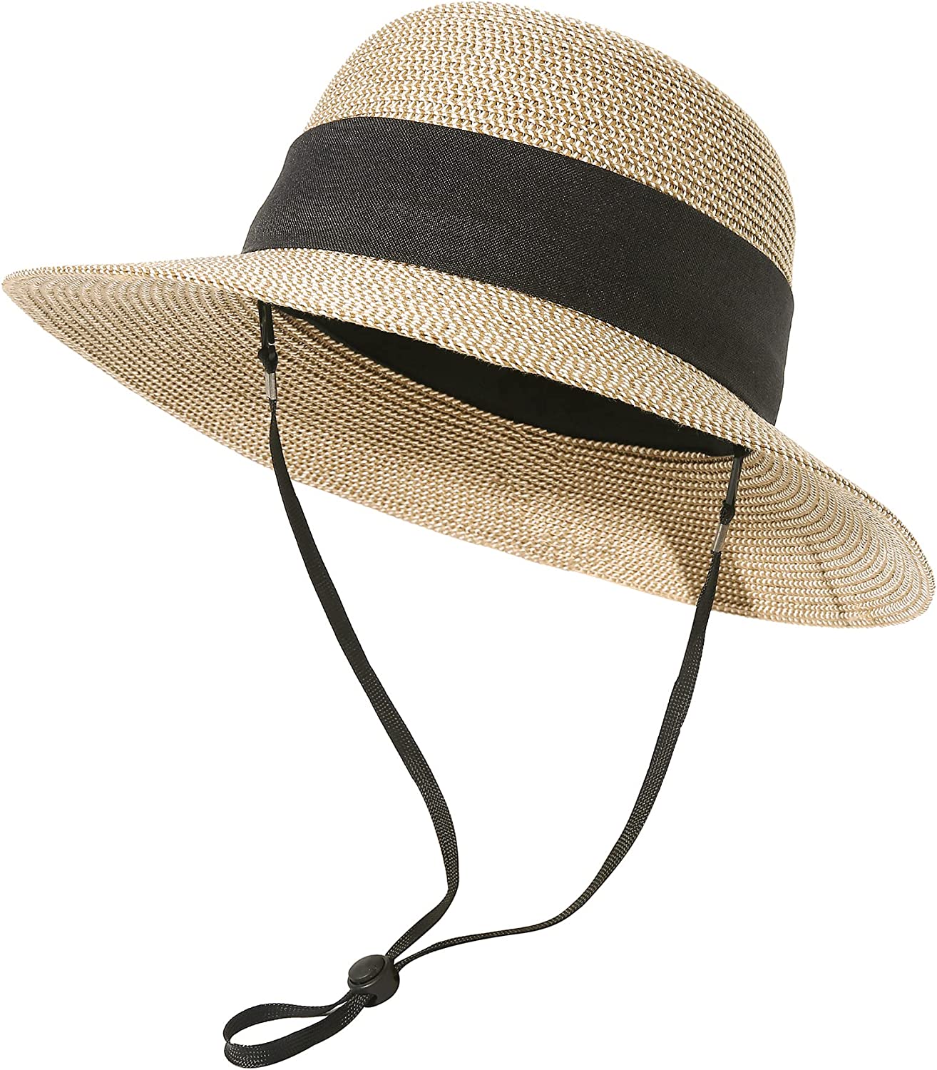 Lanzom Summer Sun Hats for Women Lady Wide Brim Straw Hat Beach Hat UPF Foldable Packable Cap for Travel Outdoor