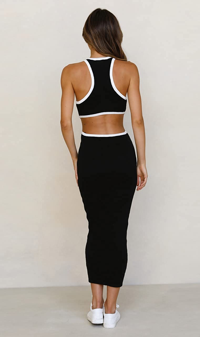 NauLon Womens Sexy Cut Out Waist Open Back Bodycon Dress Ankle Length Ribbed Party Club Midi Dresses