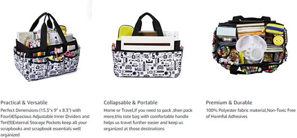 1. MULTI-PURPOSE - Wide open design with multiple Pockets around this canvas art craft caddy allows it suitable for scrapbook storage,Art &Craft,sewing tools,teaching staff,office supplies,make-up,etc.Moreover,An additional solid PP board in the bottom makes the craft storage bag good in shape and stable in structure.