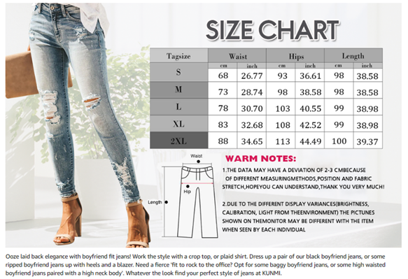 CME SHOWU Women Skinny Ripped Jeans Stretch Distressed Destroyed Denim Pants