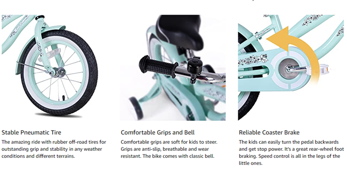 • SAFE FOR YOUNG RIDER-Coaster brake is easy to provide phenomenal stopping power when needed, so they can stay in full control, a great option for young rider. Enclosed chain guard, prevent your kids getting hurt. Removable training wheel will keep everything pointing in the right direction till she's ready to balance on her own.