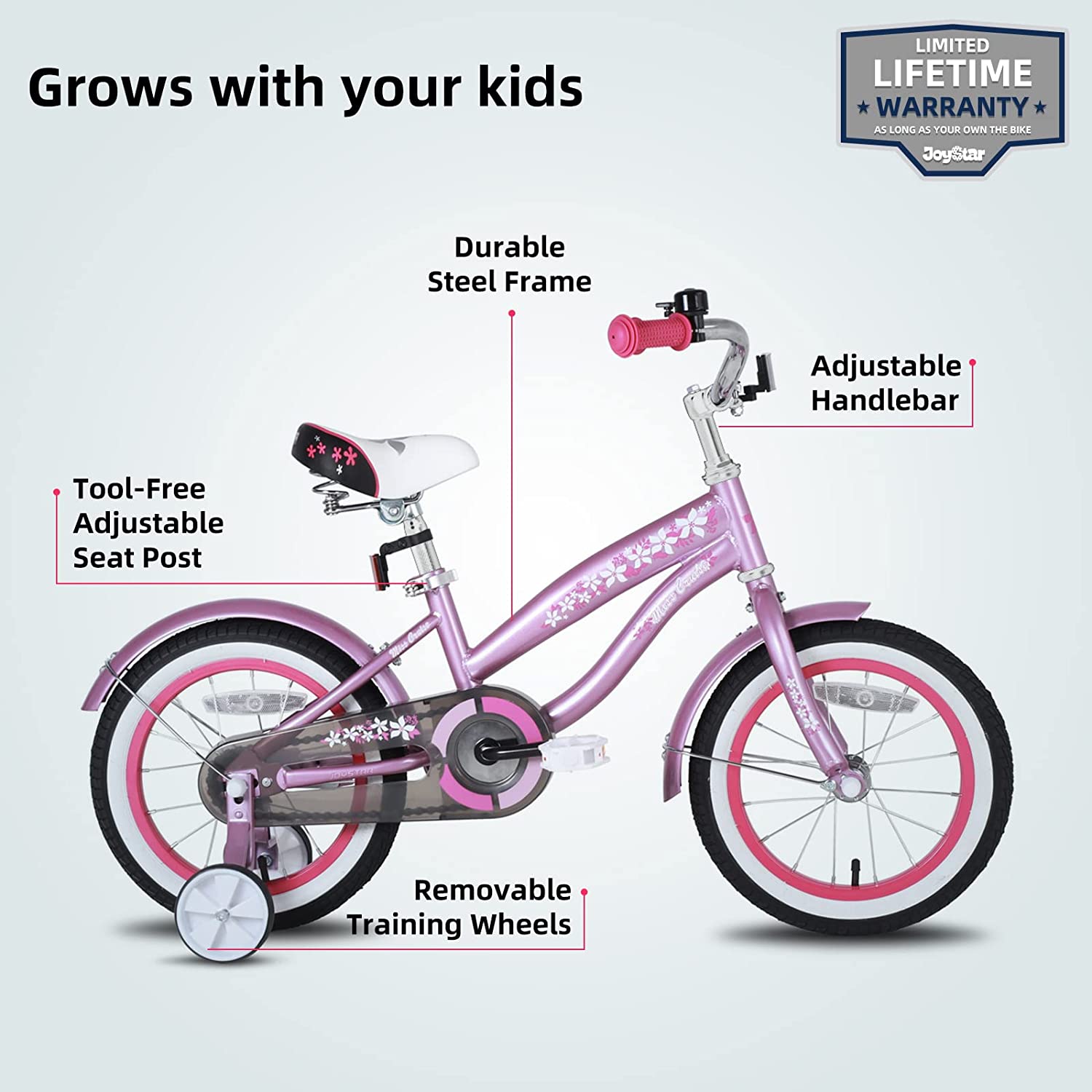 • SIZE CHART & OUR GUARANTEES-12 inch toddler bike is suitable for 2-4 years old (33-41 inch) boys & girls; 14 inch bike is suitable for 3-5 years old (35 - 47 inch); 16 inch kids bicycle is suitable for 4-7 years (41-53 inch). Adult assembly is required. The kid bike comes with 85% assembled body and the basic assembly tools, timely customer service and also limited lifetime warranty.