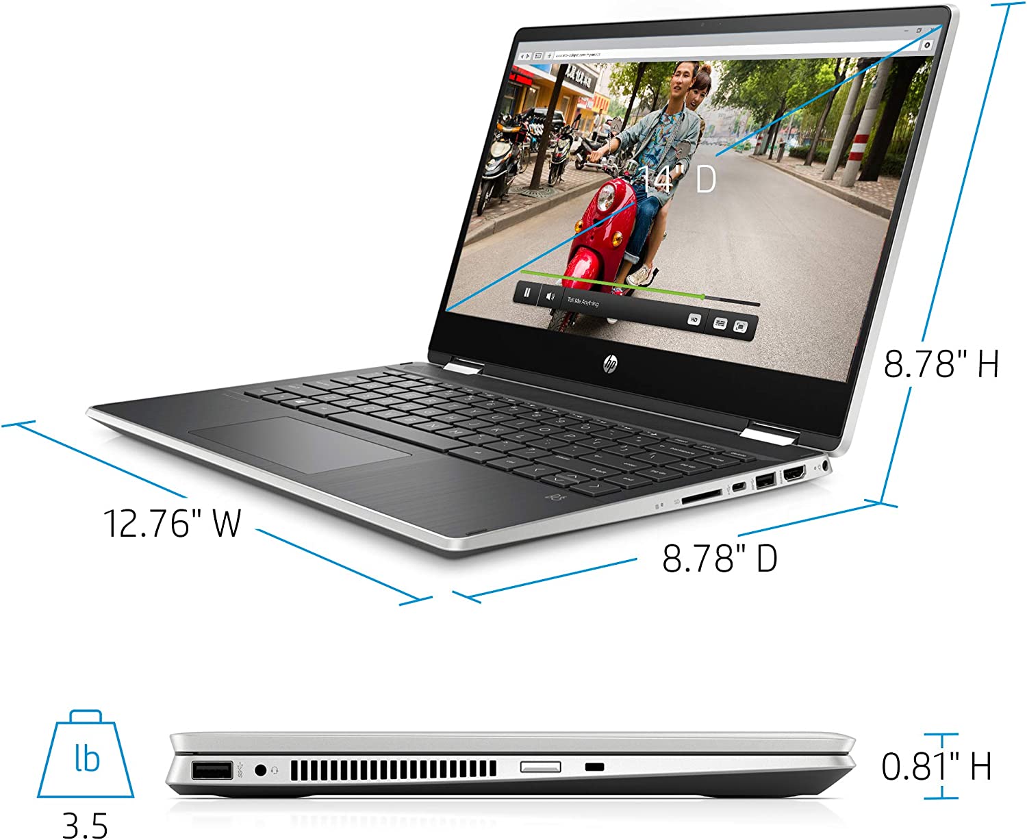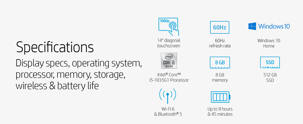 • Display: 14.0-inch diagonal full HD, IPS, micro-edge, WLED-backlit, multi touch-enabled, edge-to-edge glass touch screen display (1920 x 1080); 80% screen to body ratio