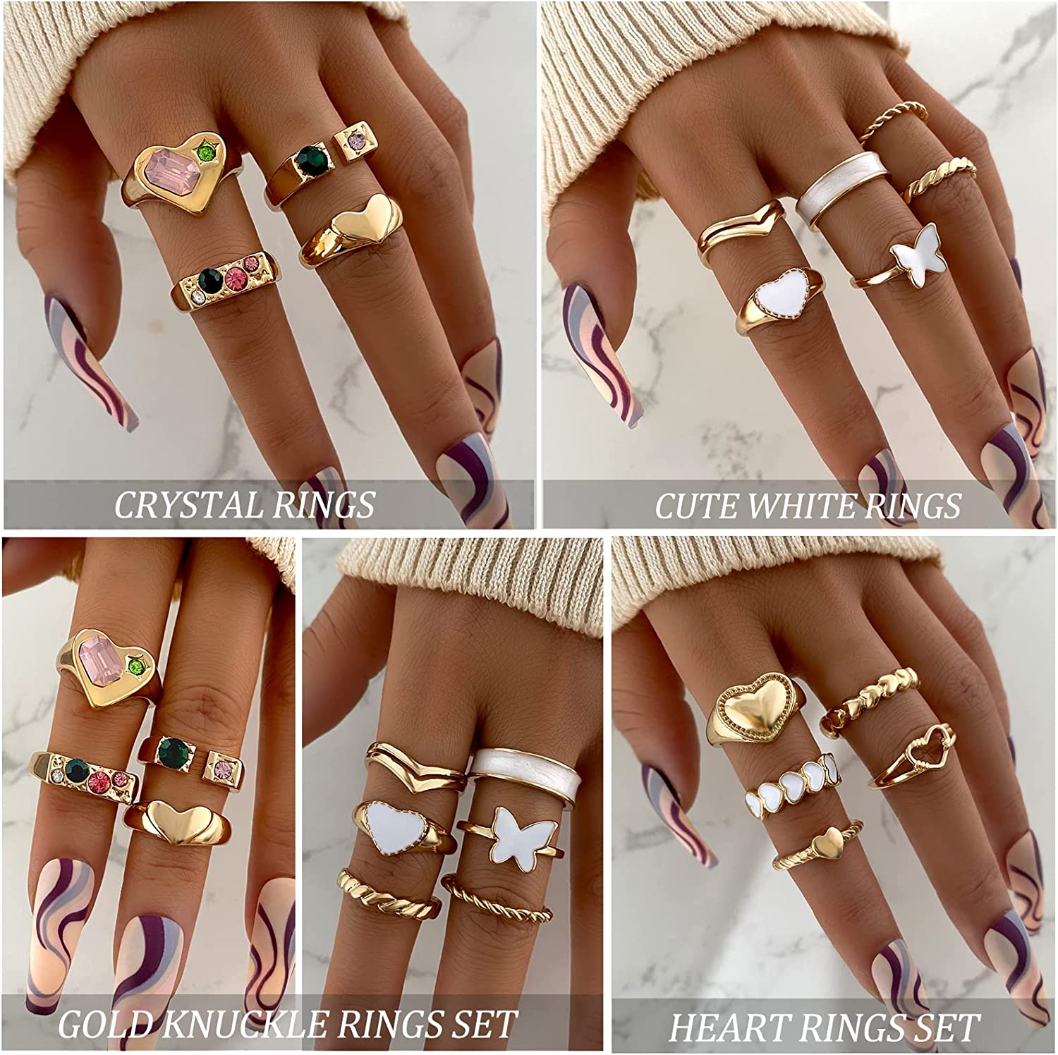 • ✿GOLD KNUCKLE RING SET✿You will get 70 pcs knuckle rings with a combination of various styles such as heart ring, snake ring, butterfly ring, twist ring and crystal-set.It will be a versatile accessory that can be used with many different styles of clothing to attend different occasions and make you look more attractive.