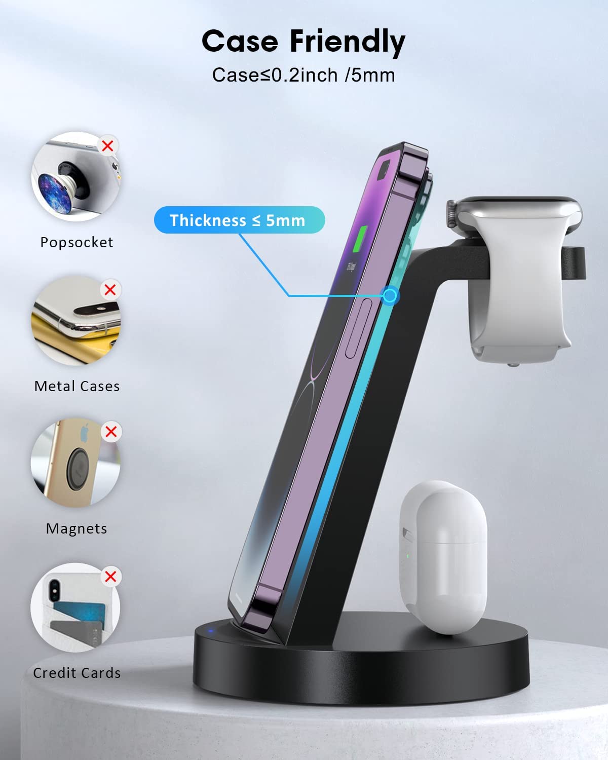 • 【Upgrade 3 in 1 Wireless Charging Station】Wireless Charging Station for Apple products,Saves your costs.Fast 3 in 1 charging station is equal to one charging station for iWatch, one Phone charging stand, 1 charging dock for AirPods. Wide compatibility to cover all IOS devices, Compatible with iPhone 14/14 Pro/14 Pro Max/13/13 Pro/13 Pro Max/13 mini/12/12 Pro/12 Pro Max/12 mini/11/11 Pro/11 Pro Max/XS/XR/XS MAX/X/8/8Plus & iWatch SE/6/5/4/3/2 & AirPods Pro/3/2/1. A must device for apple fans.