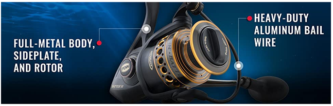 • Full metal body, side plate, and rotor and heavy duty aluminum bail wire offer exceptional durability