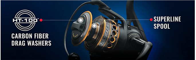 PENN Battle Spinning Reel Kit, Size 5000, Includes Reel Cover and Spare Anodized Aluminum Spool, Right/Left Handle Position, HT-100 Front Drag System