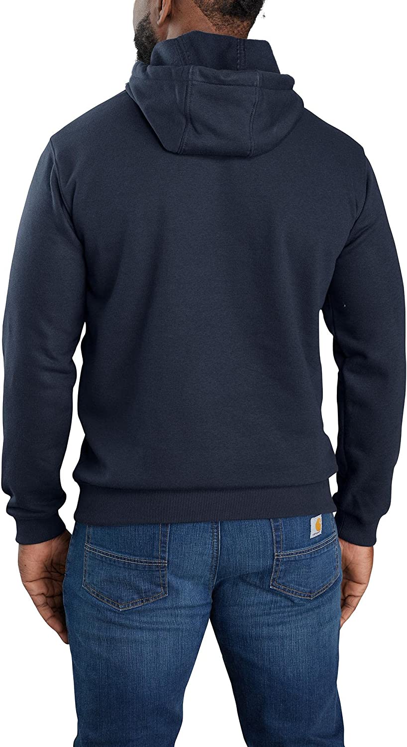 Work through light rain in this men's Carhartt hooded sweatshirt. The midweight, cotton-blend fabric is treated with a water-repellent coating that sheds wet weather. The roomy loose fit makes it easy to throw on over another layer for extra warmth.