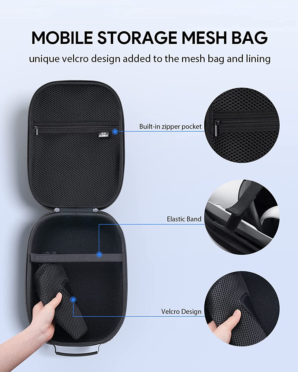☑️Reliable Service - If there is any quality problem, we will give you a 100% refund. Packaging includes 1 Oculus Quest2 storage case*, 1 lens protection cover*, 1 mobile storage mesh bag*, and 2 velcros*.