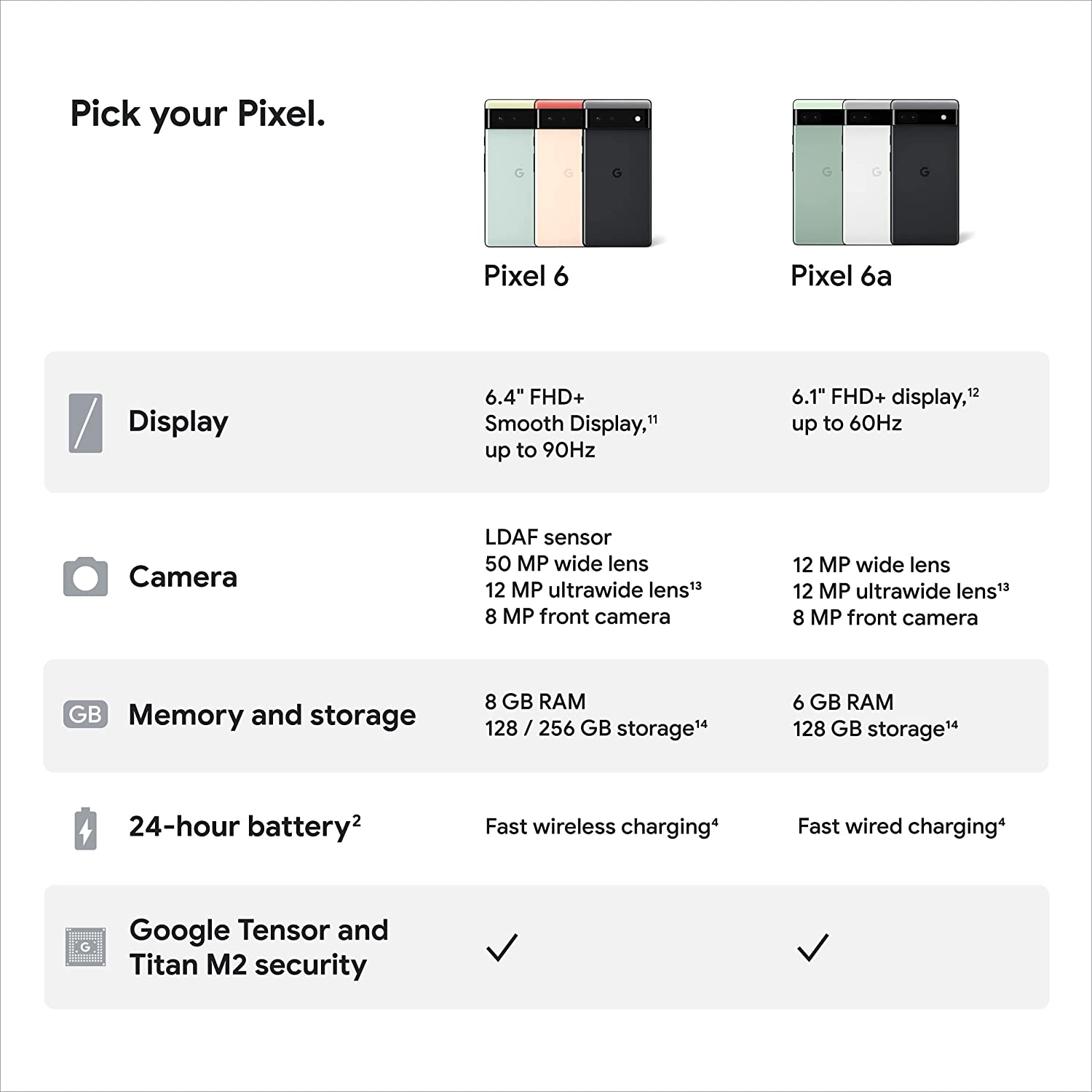 Google Pixel 6a - 5G Android Phone - Unlocked Smartphone with 12 Megapixel Camera and 24-Hour Battery - Sage