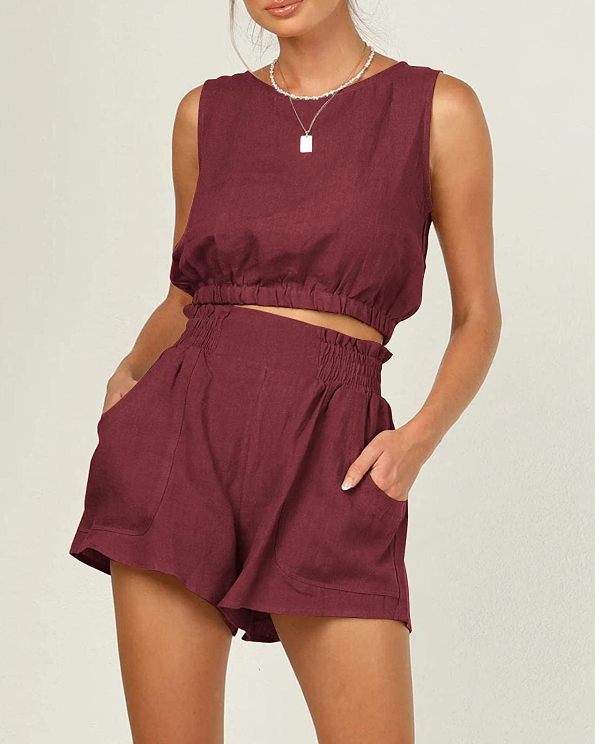 • Material:This summer two piece sets for women is made of 30%Linen 70%Rayon, soft and lightweight cotton linen material, which is breathable and skin friendly to take you cool and cozy feeling, to enjoy comfortable vacation and sleep.