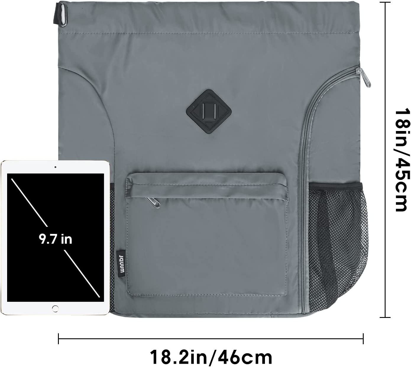 • Large Capacity: WANDF drawstring gym bag measures 18.2in x 18in , which enough to hold your most sport gears or daily essentials. It also has 1 interior wall zip pocket and 2 interior wall pockets inside the main compartment to perfect classification for your items.