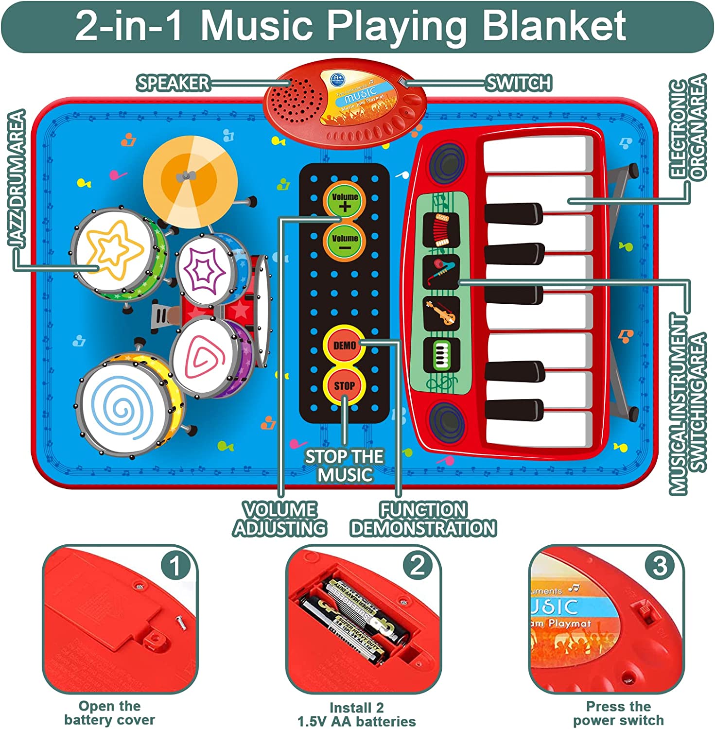 • High Quality & Safe Material Toddler Musical Toys : Toddler musical learning floor blanket is made of non-woven fabric. High-quality fabric will not hurt babies' delicate skin. Batteries are in a compartment with a screw closing to keep out of reach. Infant will enjoy the play time with baby musical mat toys, you have no safety concerns with the baby toys 12-18 months.