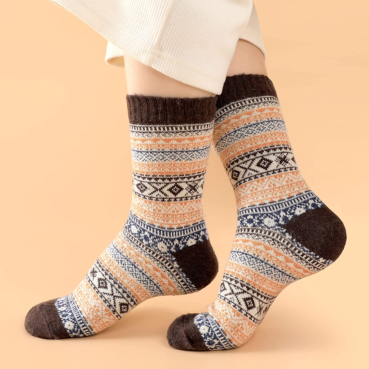 ?CHIC DESIGNS - With unique pattern, vintage trendy designs and easy-matching colors, our warm winter socks are befitting for different situations and coordinate with whatever you're wearing. These vintage wool socks are good matching for all your sneakers, boots, snow boots, and sport shoes. Brighten up those cold winter mornings with thick knit thermal wool socks and keep your feet warm.