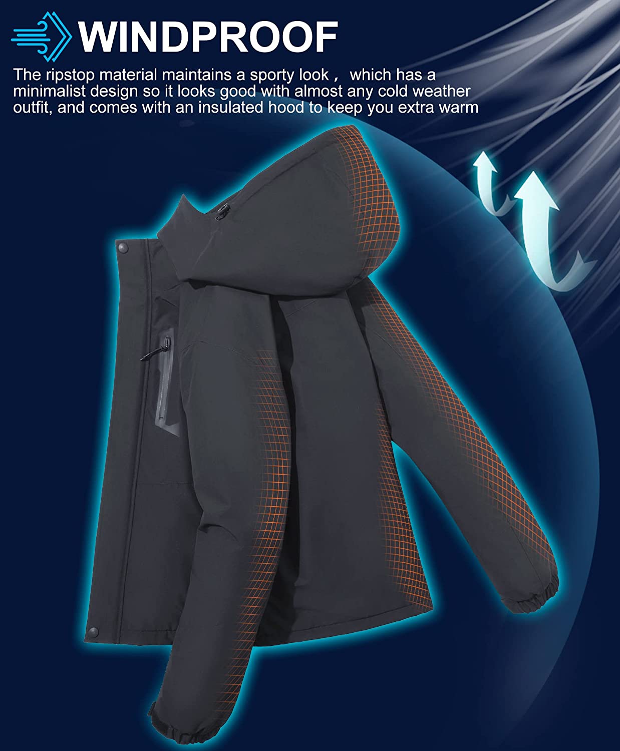 - 【COZY AND CHIC】This mens winter jacket uses a supple fleece interior, zipper pockets, and a cozy chin guard , making with the ripstop nylon material to maintains a sporty look. Its bonded construction and insulated liner ensure you'll stay warm and dry in winter weather.