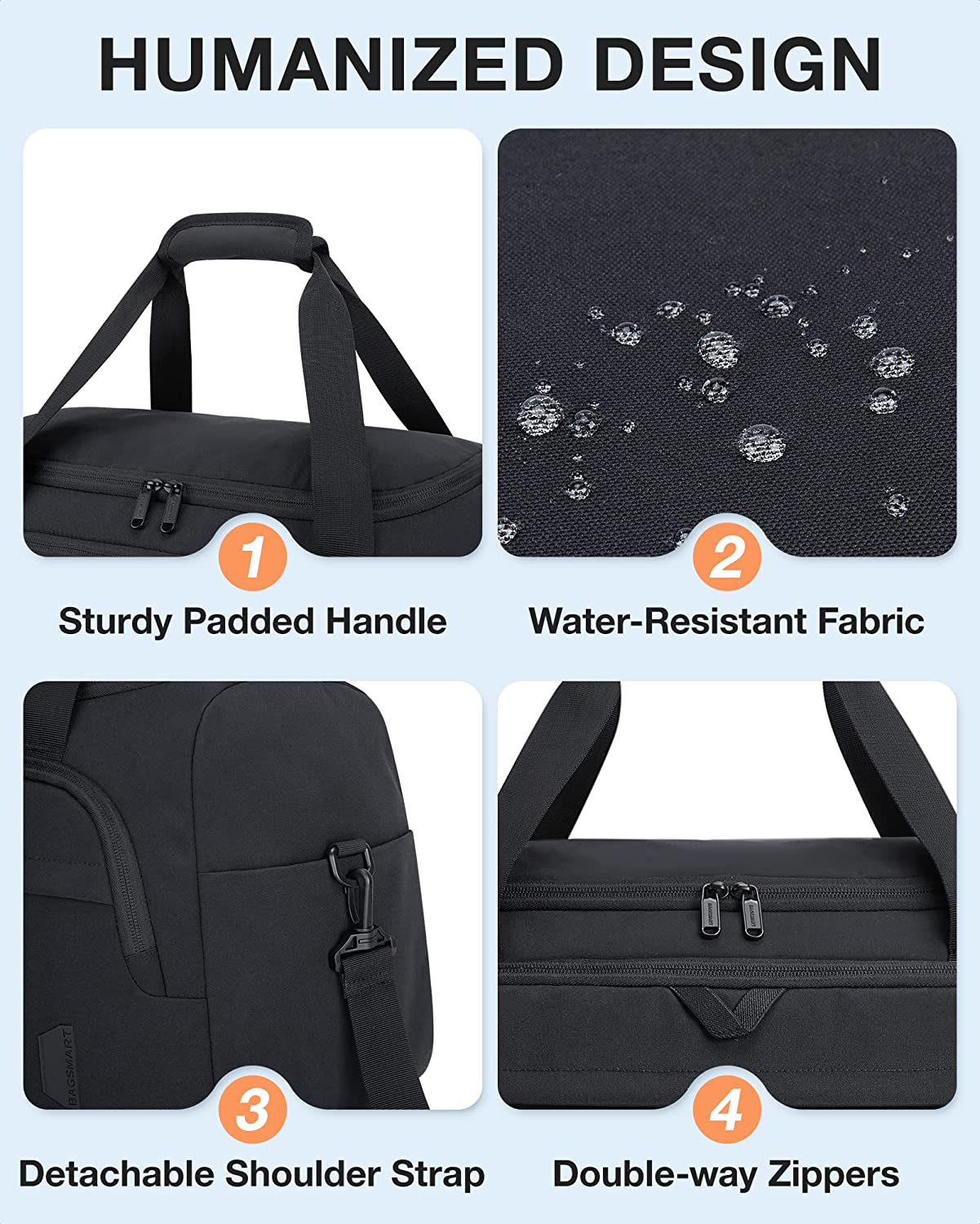 Duffle Bag for Travel,BAGSMART Carry on Weekender Overnight Bag,Travel Duffel Bag with Toiletry Bag,Shoe Bag (Black,38L)