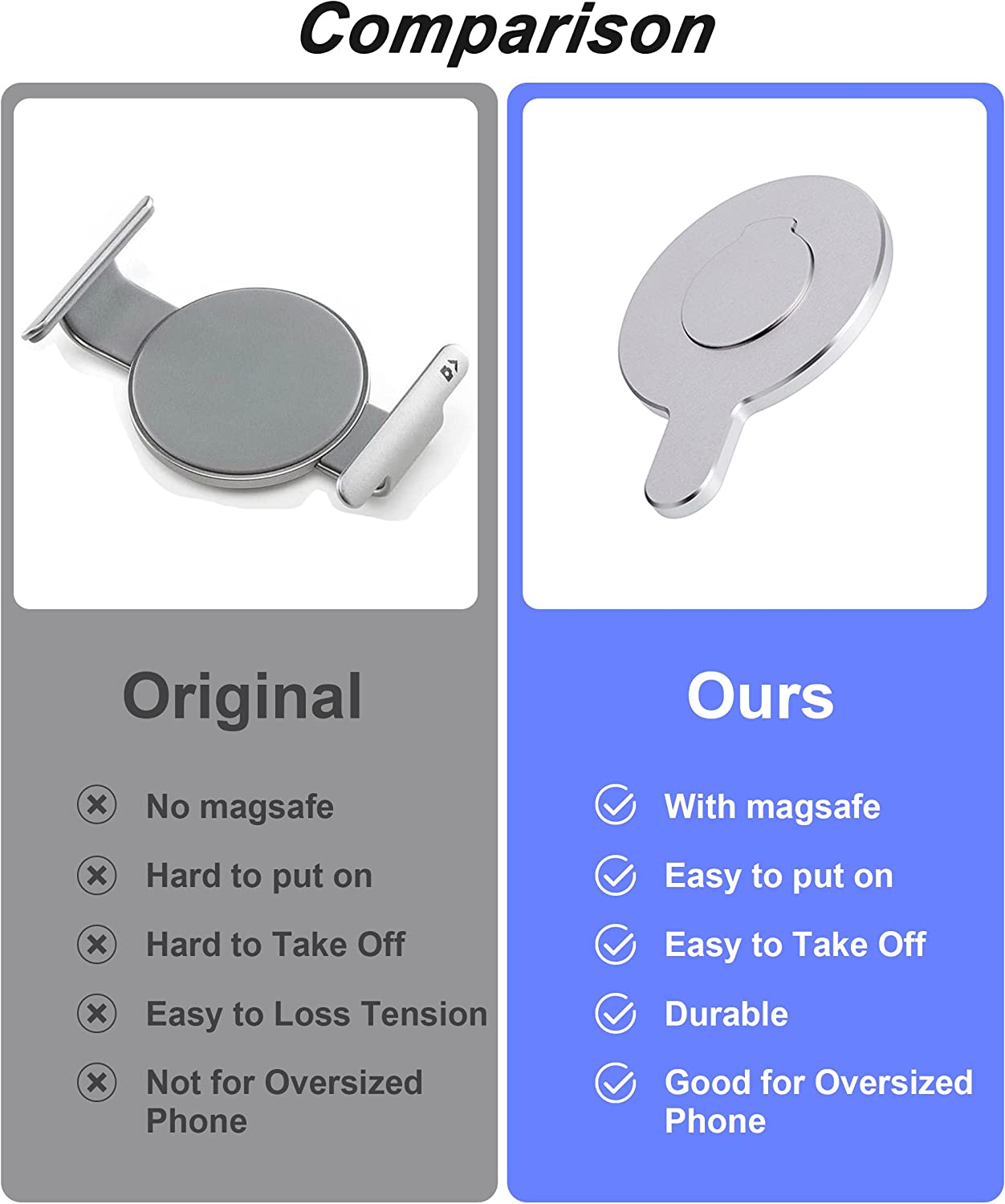 • Compatible with iPhone MagSafe and Android smartphones: This adapter can hold larger phones than the original clamp, making it compatible with a variety of devices.