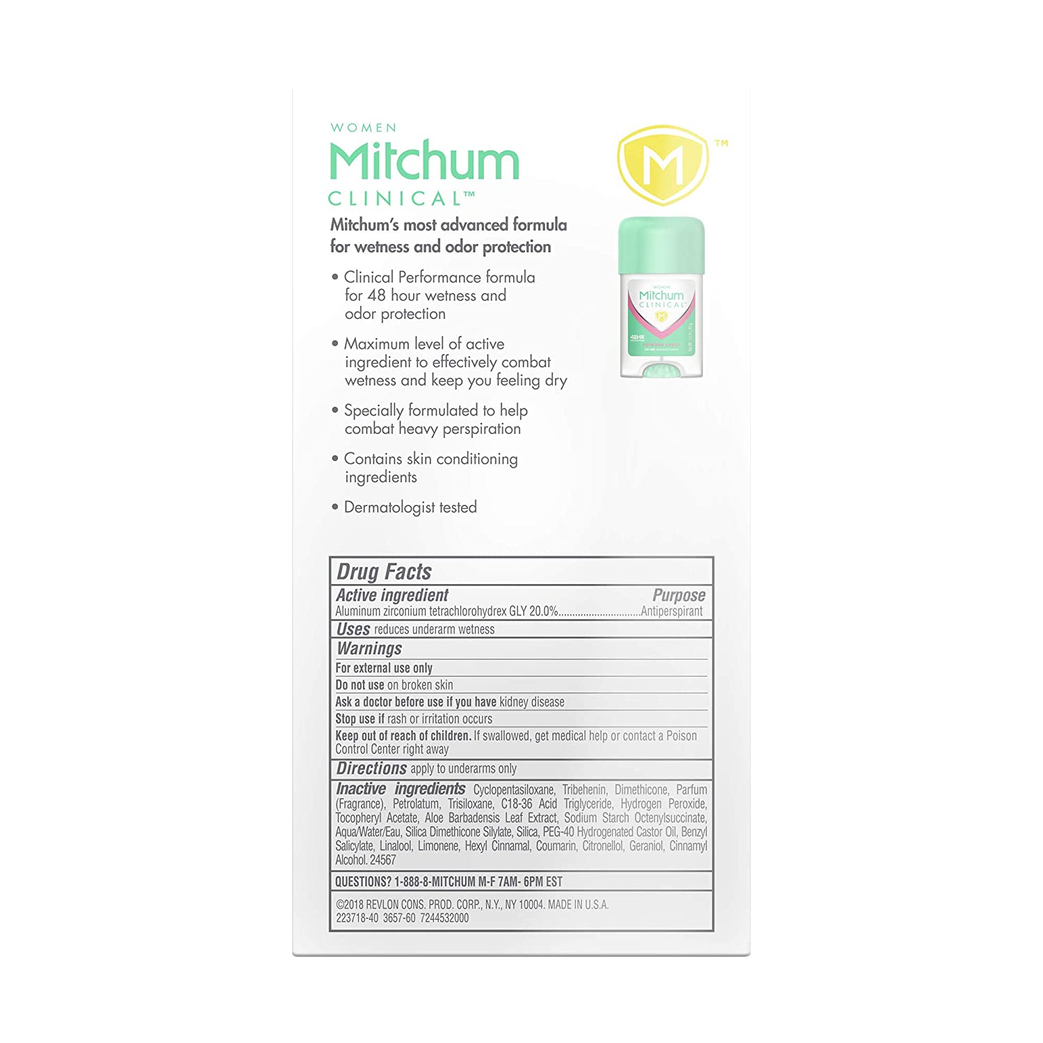 Mitchum Clinical Soft Solid Deodorant is Mitchum's most advanced Clinical Performance formula for odor and wetness protection. Maximum level of active ingredient to effectively combat wetness. This soft solid deodorant stick provides up to 48 hours of protection. Available in 3 subtle scents or unscented.