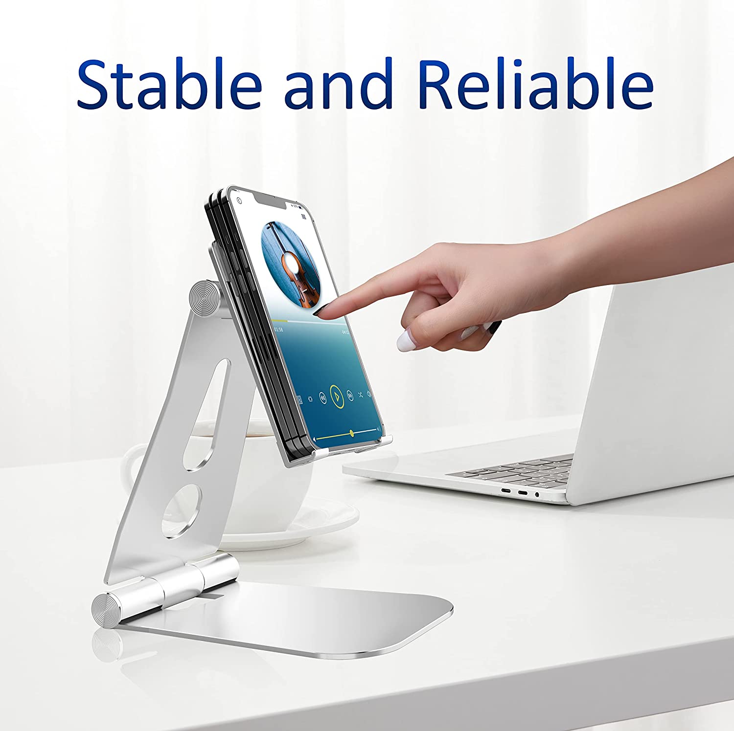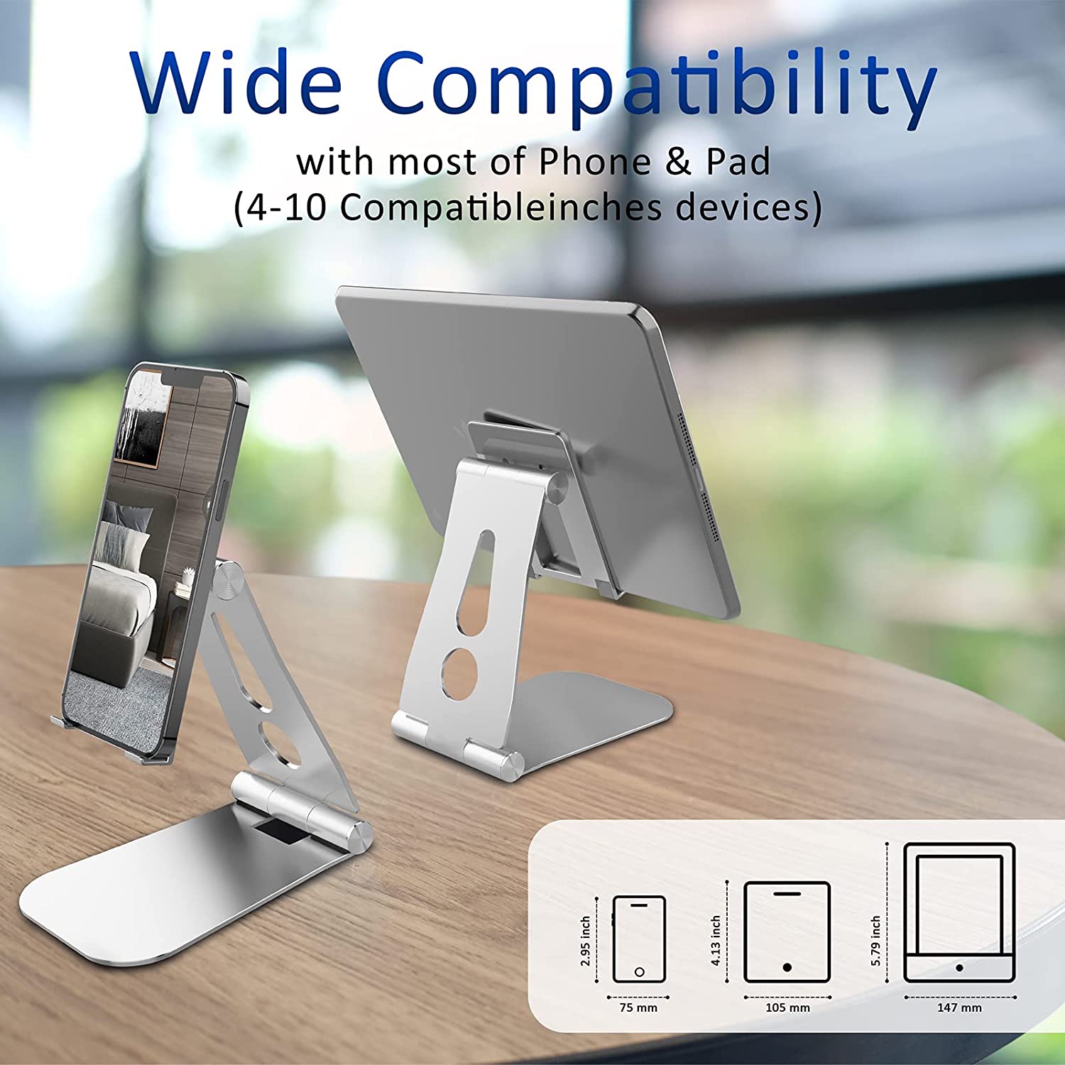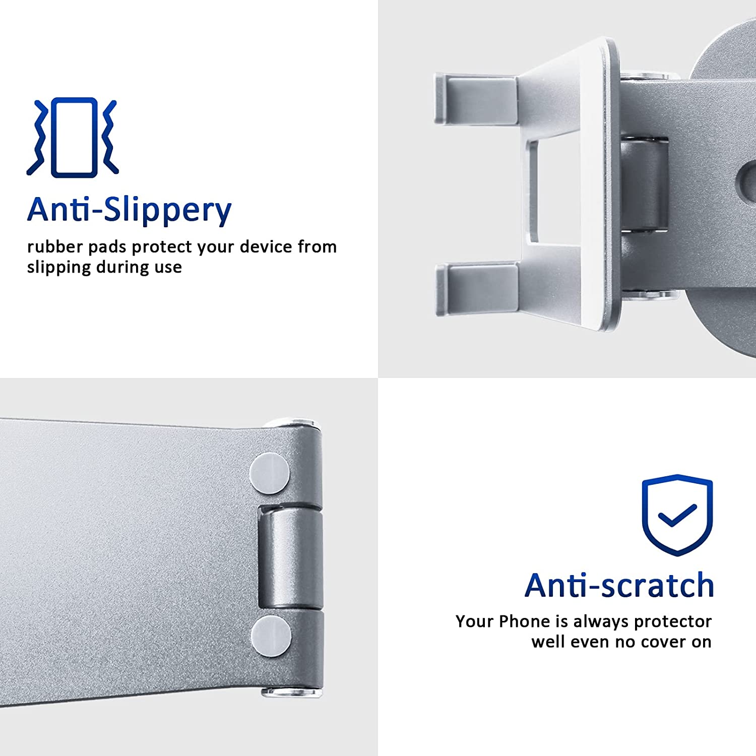 MKLCCP Phone Stand, Cell Phone Stand, Adjustable Tablet Stand for Desk, pgraded Longer Arms for Greater Stability Tablet Holder, iPhone Holder for Bigger Sized Phones and Tablets iPad, Silver