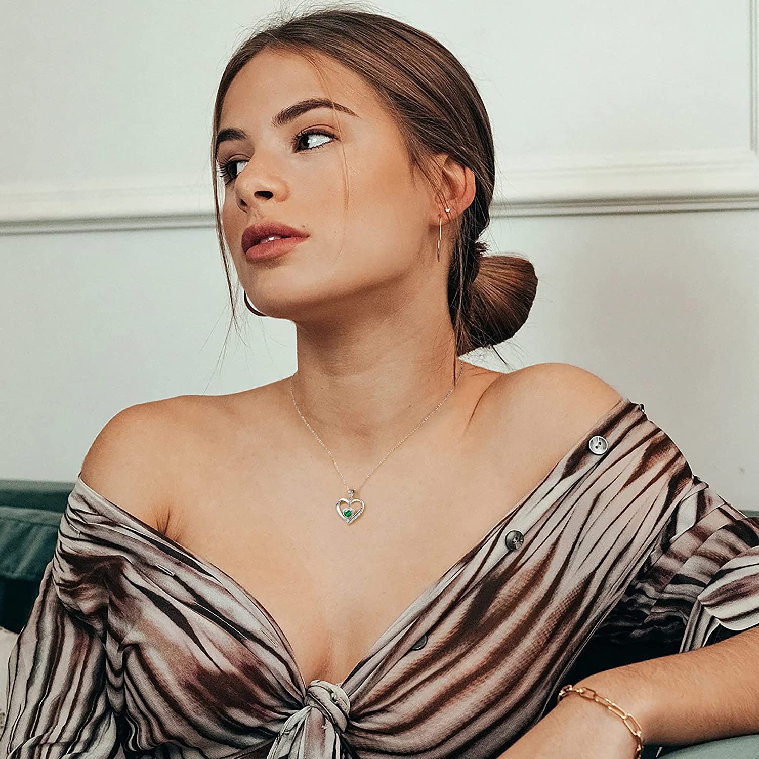 • S925 STERLING SILVER Necklace: Heart pendant necklace made of S925 sterling silver, with birthstone is an unique and heartfelt fashionable jewelry beautifully packaged and ready for gift giving.