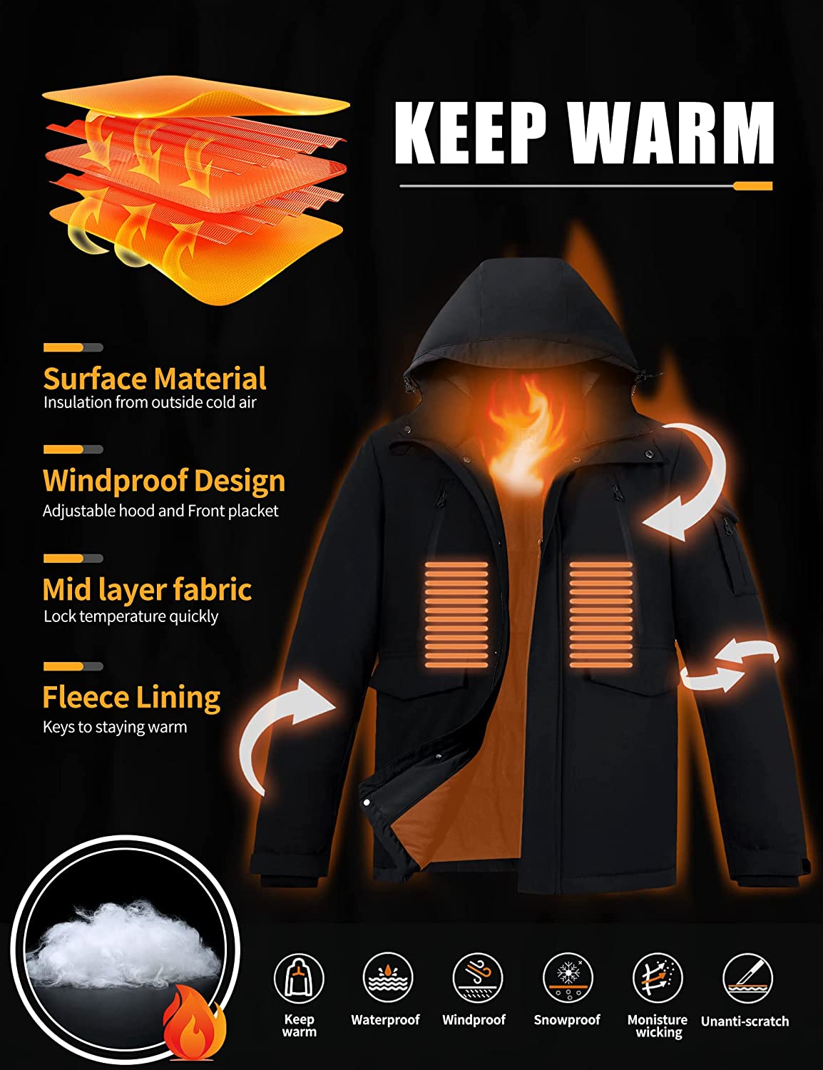 • Warm & Durable winter jackets for men: 100% Polyester Fabric and Soft Fleece Lining jacket keeps you warm and comfortable in cold weather, The male winter coat shell fabric is durable and wear-resistant, Ideal for your autumn/ winter outwear.
