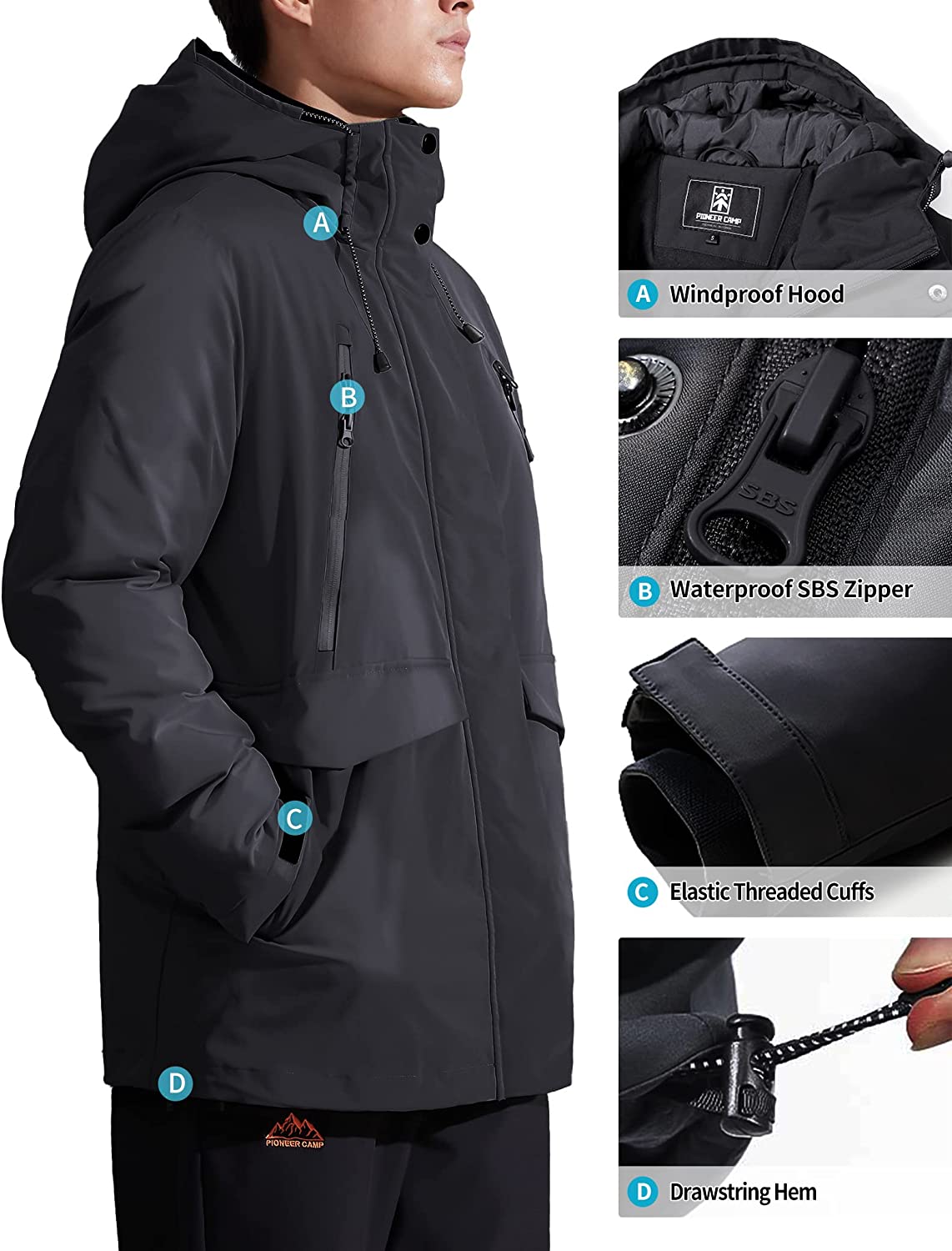 Pioneer Camp Men's Winter Coat Waterproof Fleece Lined Warm Winter Jacket with 9 Pockets Insulated Windproof Hooded Parka