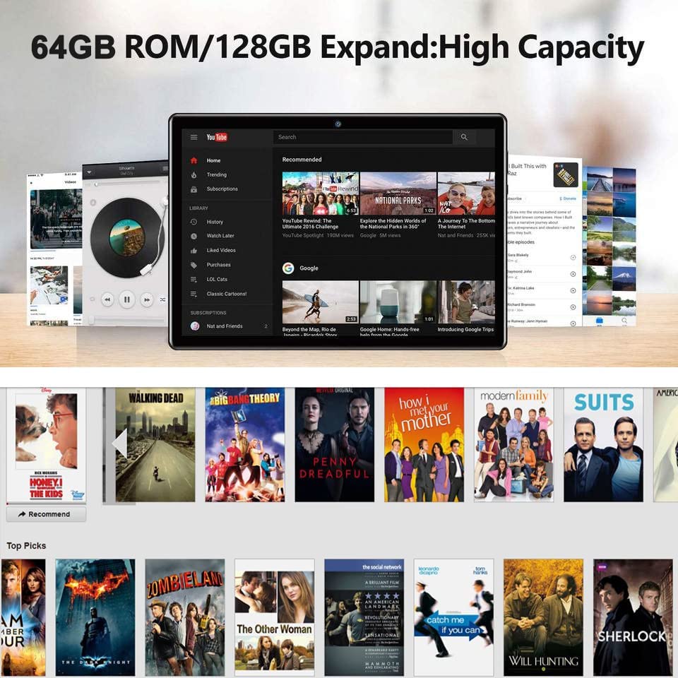 • ☛Super HD Display & Dual Speakers: This 10.1-inch tablet has 1280*720 HD resolution, allowing you to have a clearer viewing experience when watching movies, and the eye protection mode can reduce your eyestrain and protect your vision. The dual-speaker design brings you more realistic 3D stereo surround sound, giving you the best viewing experience when watching videos, movies, educational games, and more.