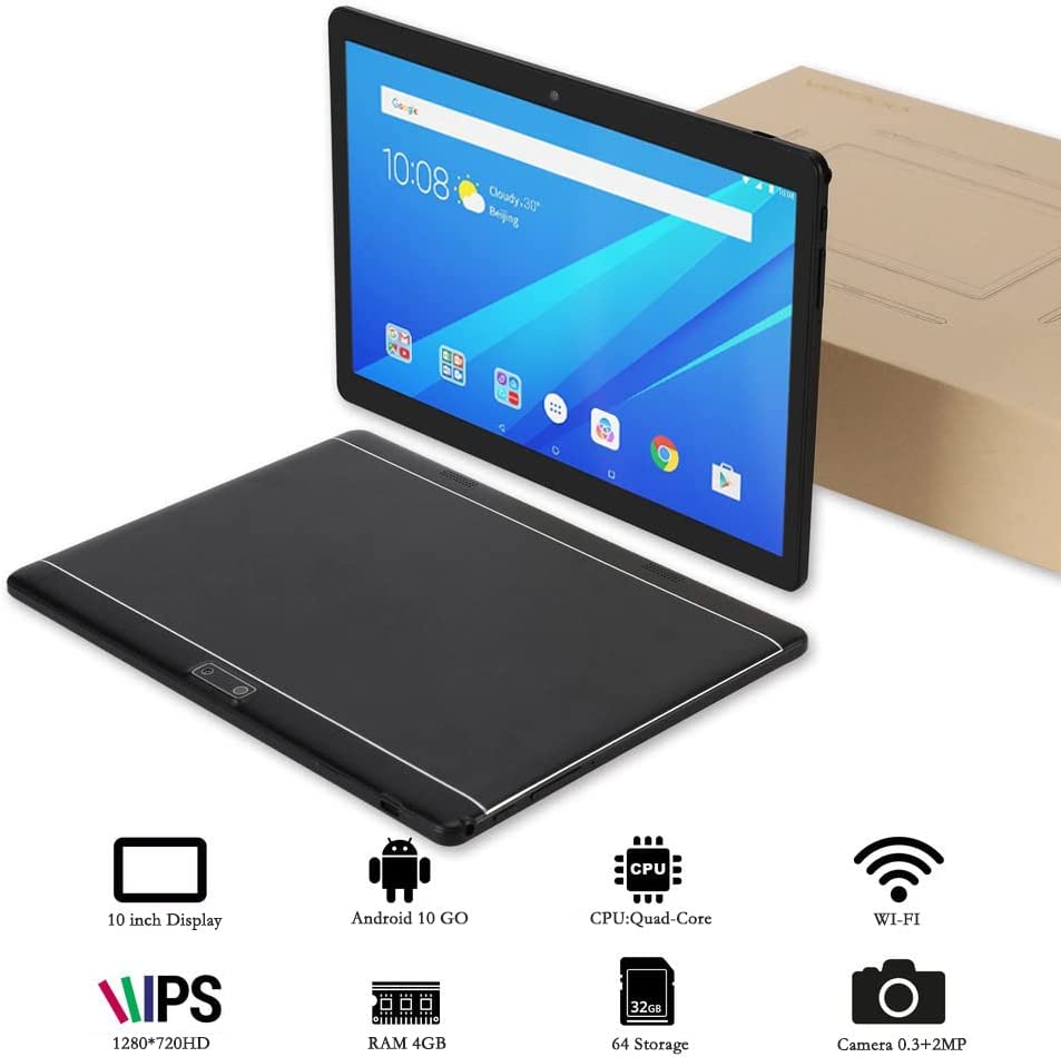 Tablet PC 10 inch Google Android Tab PC, Quad Core 1.5Ghz, 4GB RAM 64GB ROM, HD IPS Touch Screen, Dual Camera, 5000mAh Battery, Wi-fi, Bluetooth, FM, GMS