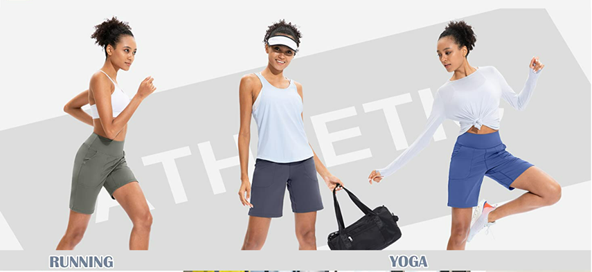 • [3 Pockets] The womens bermuda shorts features one back zipper pocket on waistband and two side pockets are deep enough to hold your phone, cards or keys without falling out, free your hands during running or exercise.
