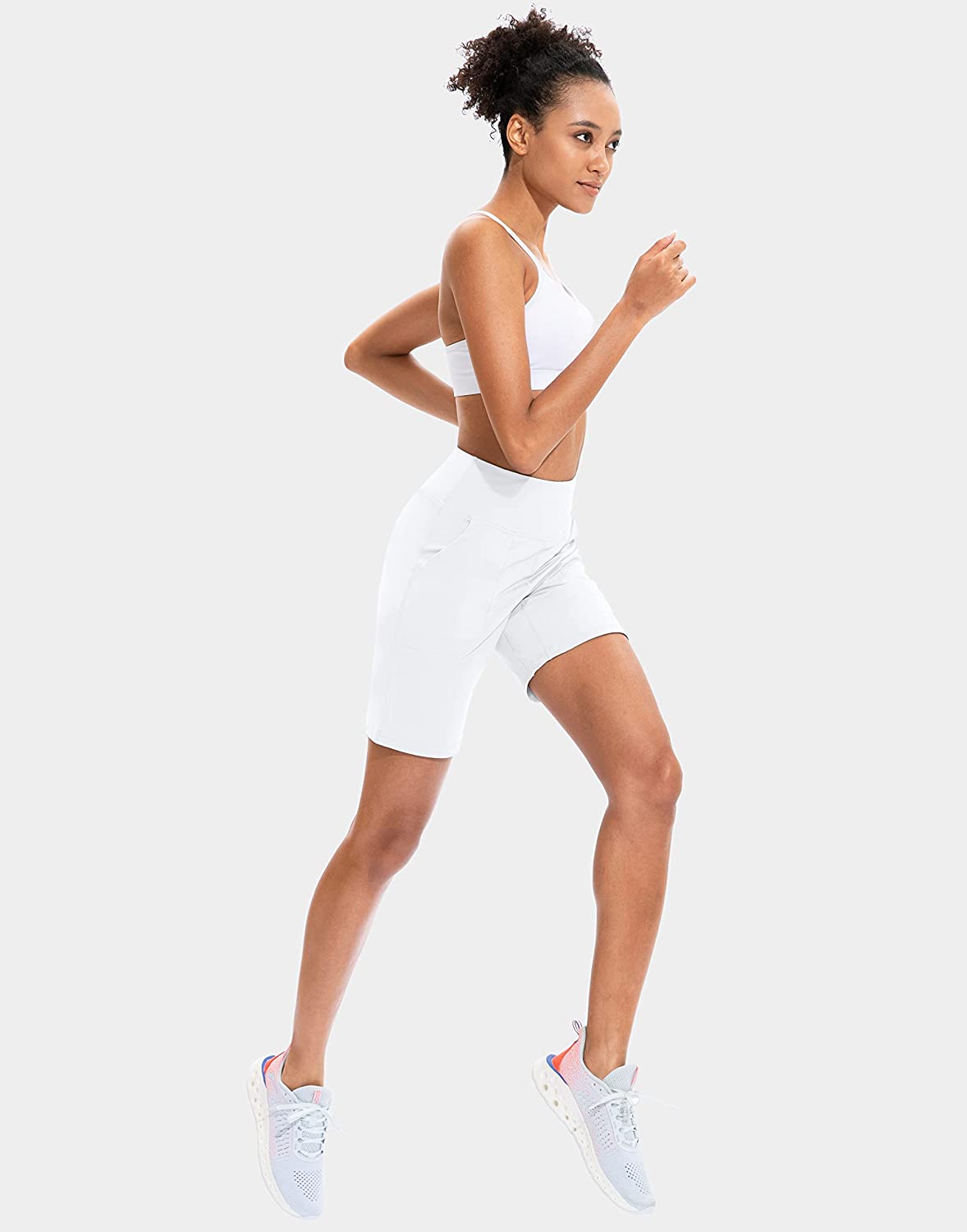 SANTINY Bermuda Shorts for Women with Zipper Pocket Womens High Waisted Long Shorts for Running Workout Athletic