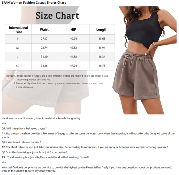 EFAN Womens Sweat Shorts Summer Casual Comfy High Waisted Lounge Shorts Drawstring Cotton Shorts with Pockets 2023