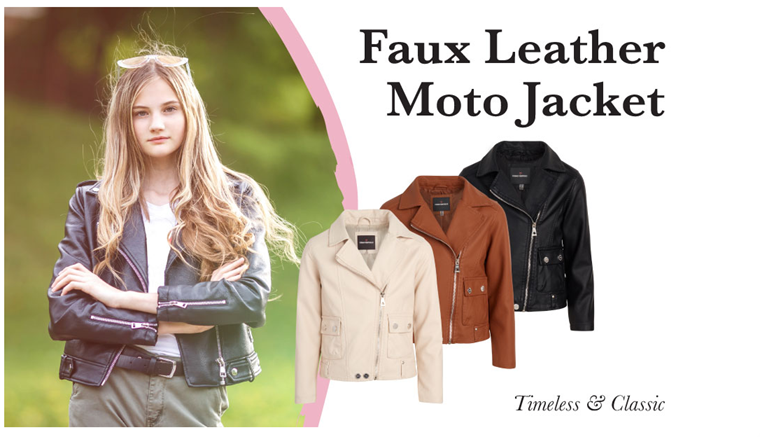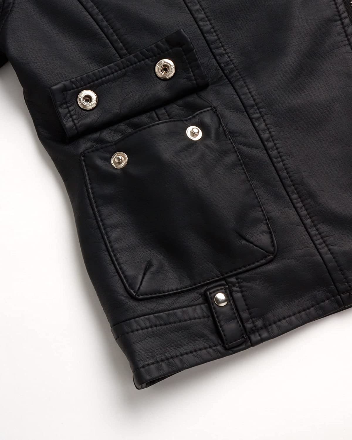 • MOTO STYLE: Our timeless and classic moto biker jackets feature a comfortable zip design, deep hip pockets to cover chilly hands and valuables; Earn some extra style points when hanging out with your friends and family with this girls' lightweight coat; Perfect for school, playdates, and any autumn outdoor activities, our selection of fashionable vegan leather jackets will help you nail your daughters dream look
