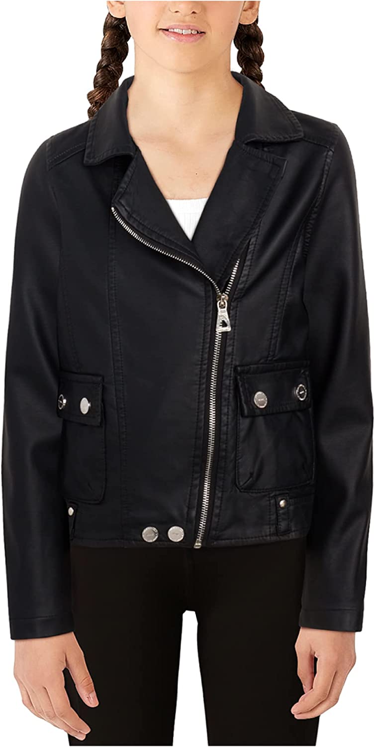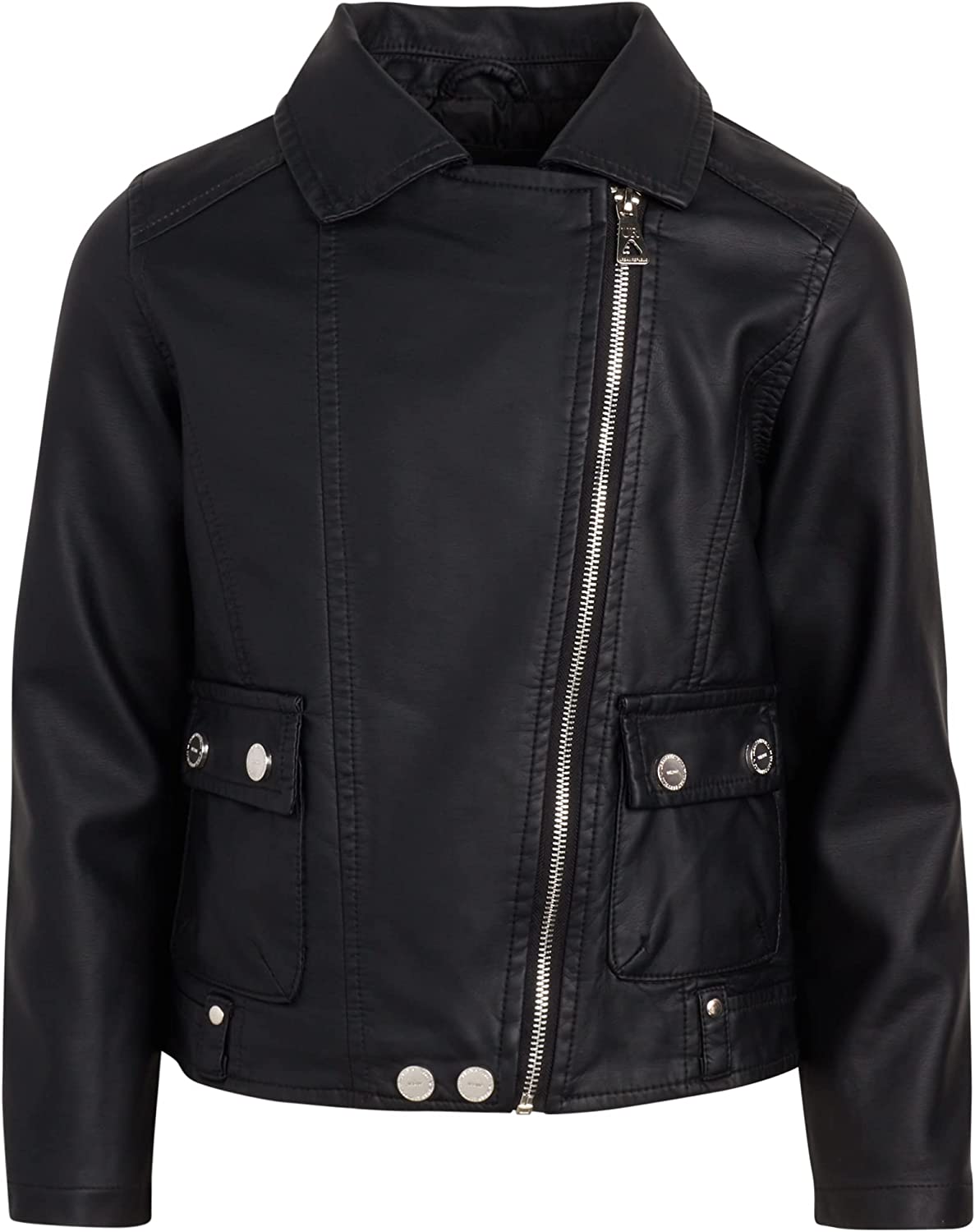 • FAUX LEATHER JACKET: Stay warm without being too bulky and elevate your coat collection by adding a great-looking faux-leather jacket to your daughters winterwear collection; Great everyday winter jacket for stylish little girls that enjoy outstanding functionality and convenience; Layer up in style with this classic girls' motorcycle jacket