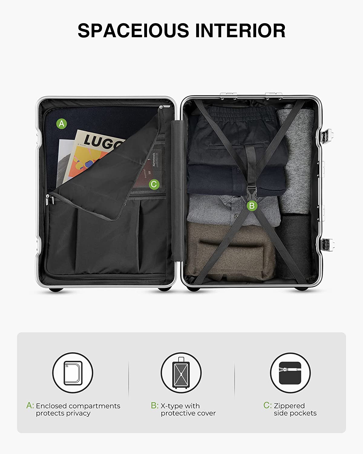 SMOOTH ROLLING - The aluminum frame luggage contains 8 smooth rolling silent wheels feature a directional control system. Feel the perfect maneuverability from LuggeX during the trip!