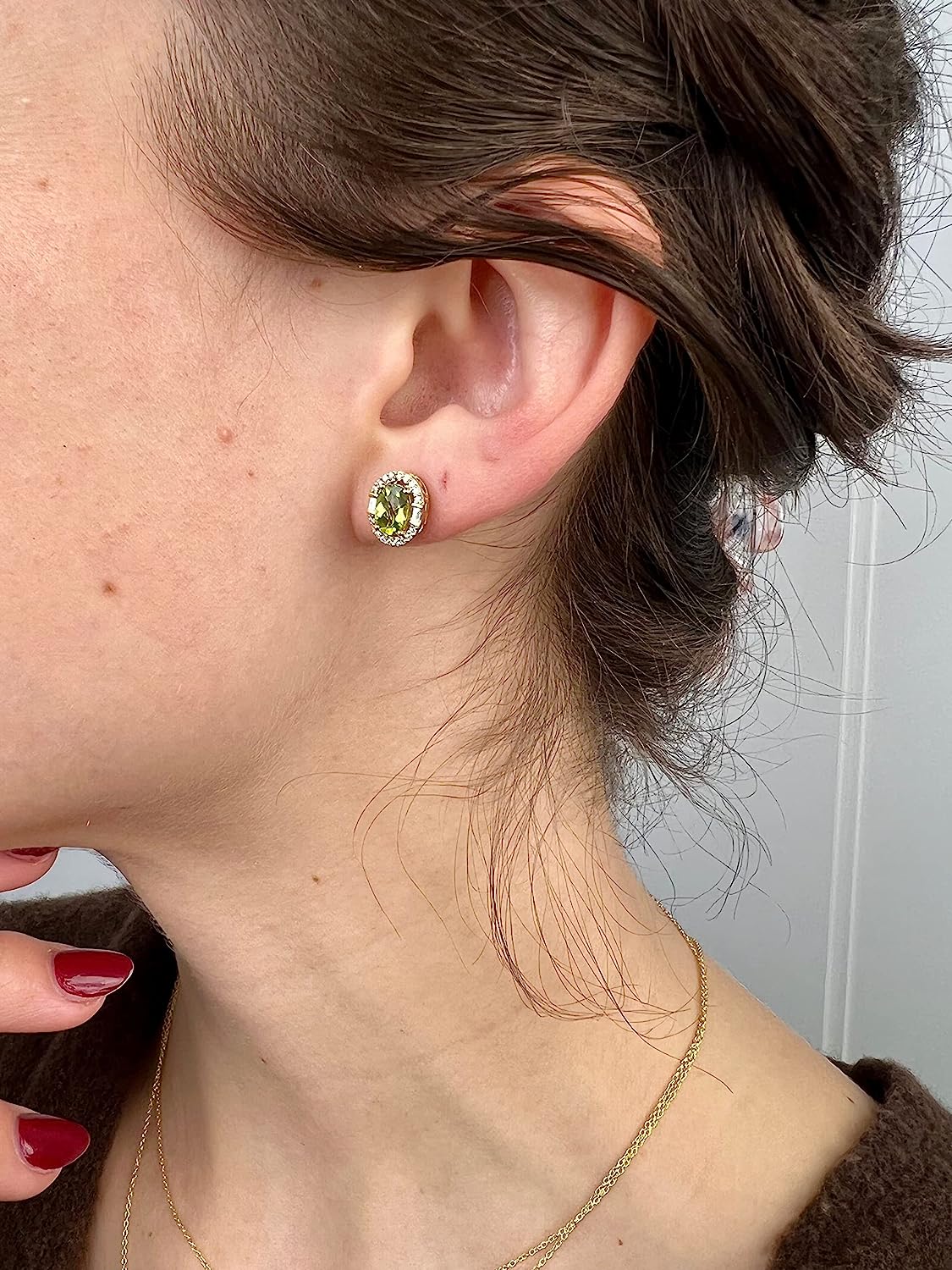 1/5 Carat Diamond and 1 2/3 Carat Green Peridot Oval Halo Stud Earrings for Women in 14k Yellow Gold (G-H, SI1-SI2 / VS2-SI1, cttw) Push Back Studs by LeVian