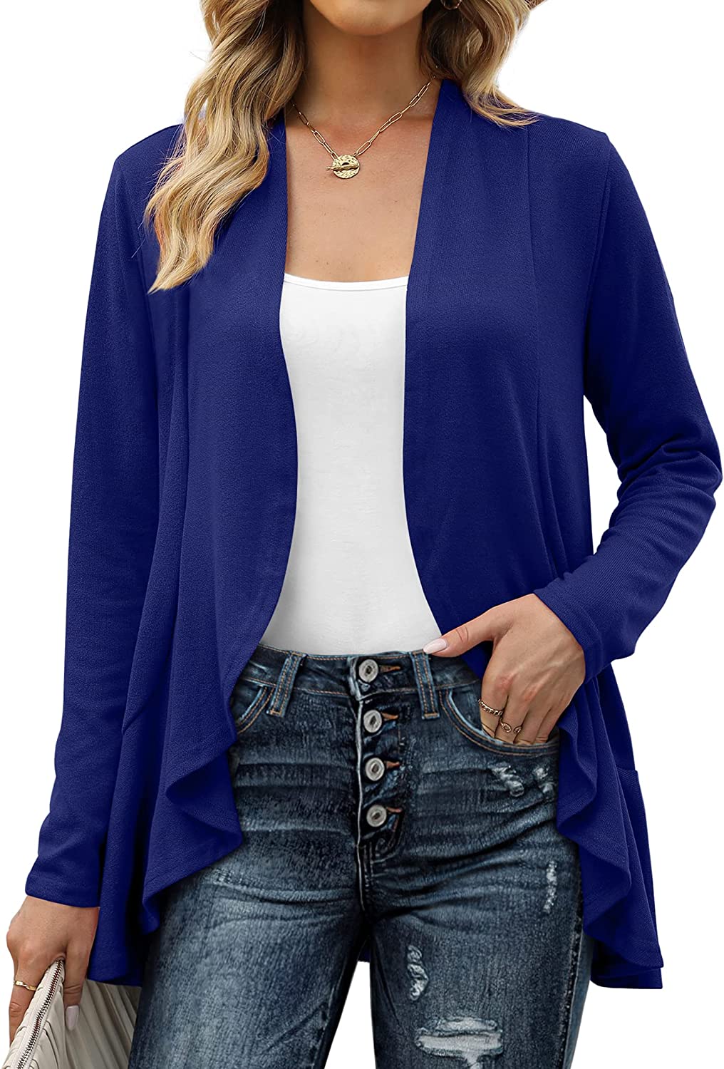 ✦Feminine Design: Long Sleeve open front cardigan for women, ruffled drapes cardigan sweaters with irregular hem, light fall jackets. It's soft and not too heavy, an essential for daily all seasons.