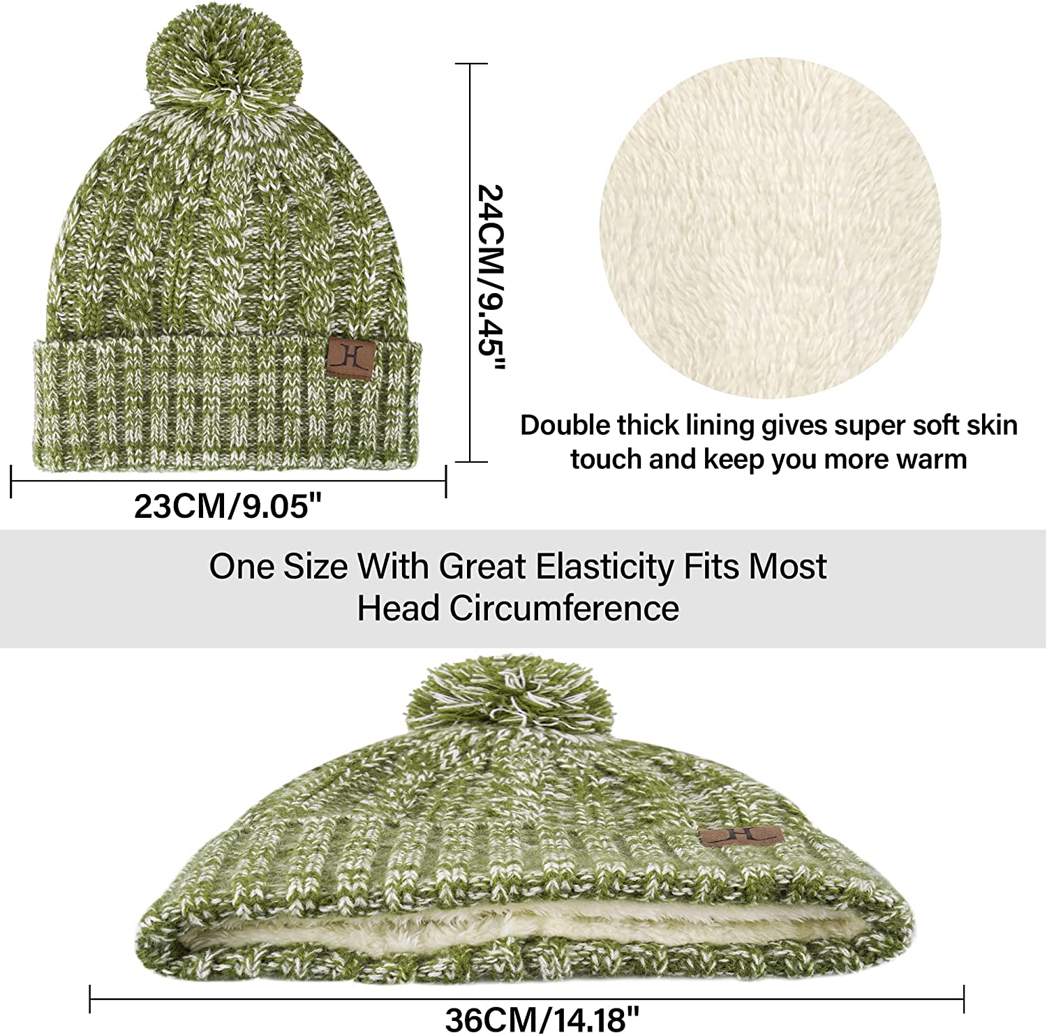 • 【Warm Fleece Lined Beanie Hat】Double layer design makes the beanie more breathable, thick fleece lining gives a a super soft skin touch and better warm-keeping effect. Cute fluffy pompom on the top enhances the sense of hat design, make you look more dynamic.