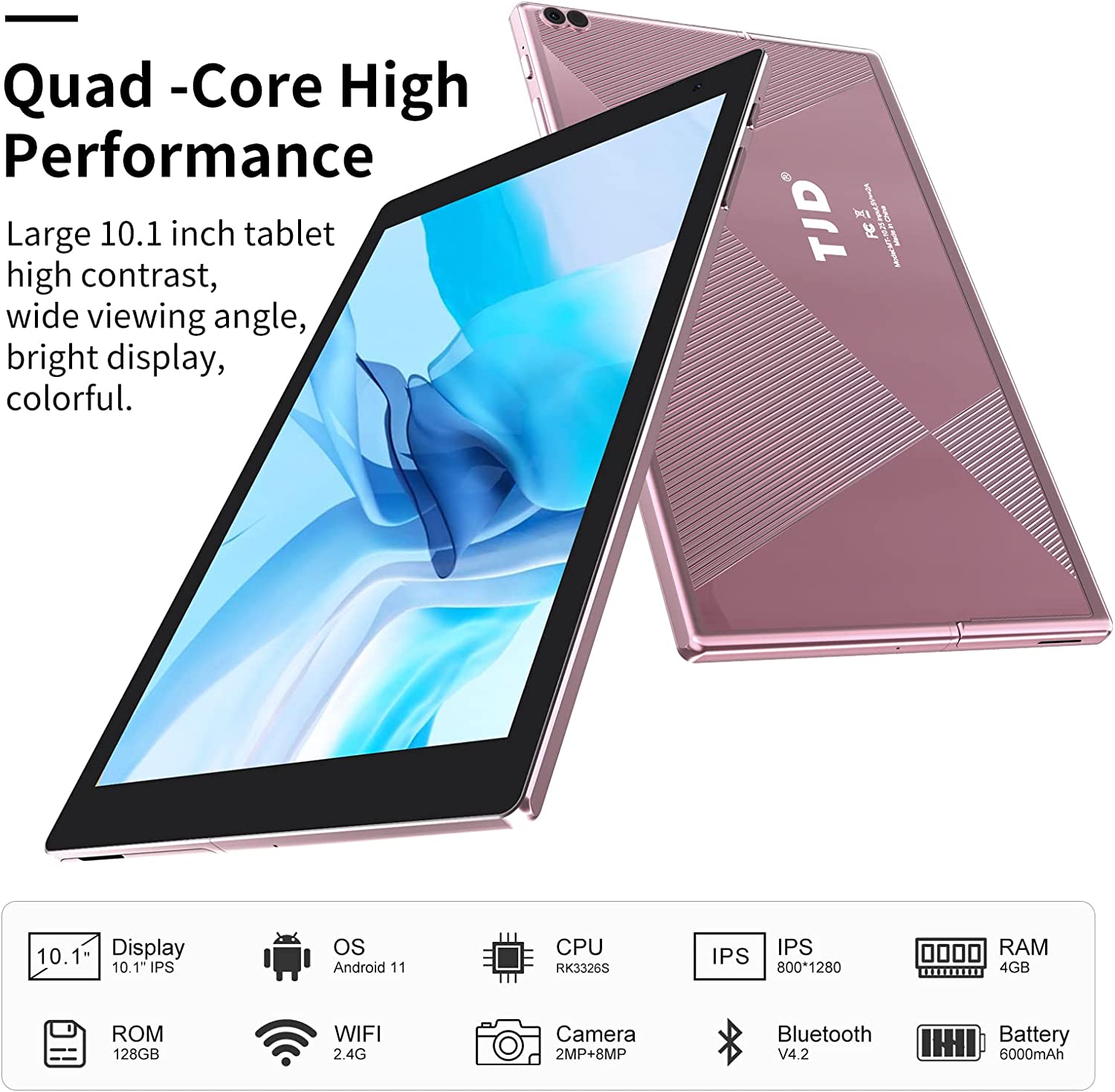 TJD Tablet 10.1 Inch Android 11 Tablets with Stand, 4GB RAM 128GB ROM 512GB Expandable, Quad-Core Processor/WiFi6/Google GMS Tablet/ 6000mAh Battery/8MP Camera/Bluetooth/IPS HD Touch Screen