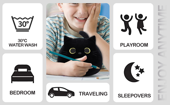 The perfect gift: Anime Cat Soft Throw Pillow, cute pillow plush toys and is very suitable for children to play. No one doesn't like cute soft and fluffy plush dolls. This soft and cute black cat pillow is a gift for children, friends and family. Lovely shape will bring them good luck and happiness
