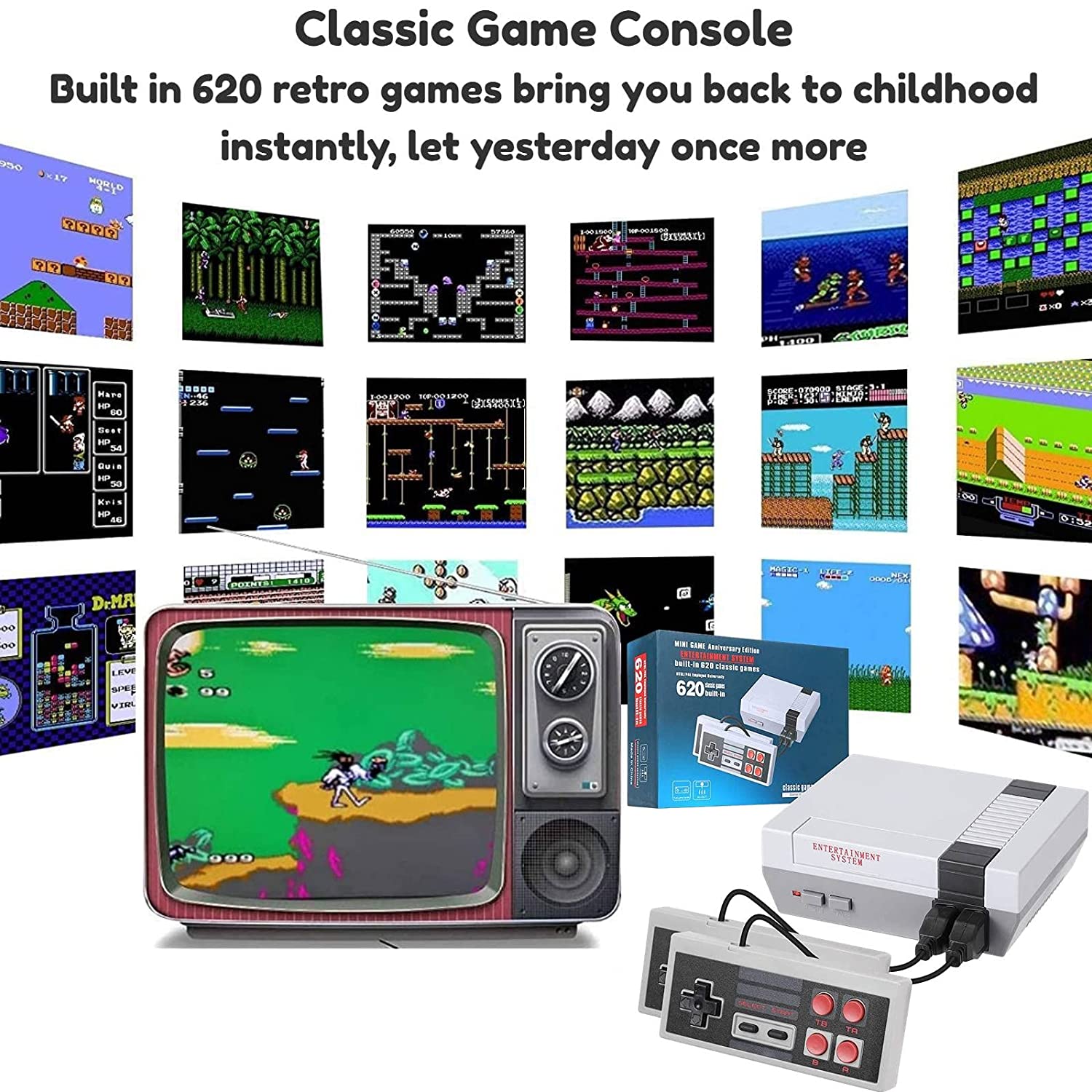 - ? Classic Retro Game Console,Childhood Memories : The classic retro game console was very popular in the 80s of the last world,built-in 620 classic video games which include action,fighting and racing and other types.no need to download and insert cards.These games are fun and challenging,and can bring you back to your childhood memories instantly.