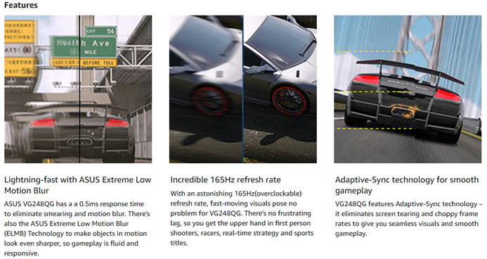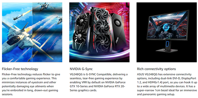 ASUS VG248QG 24" G-Sync Gaming Monitor 165Hz 1080p 0.5ms Eye Care with DP HDMI DVI, Black