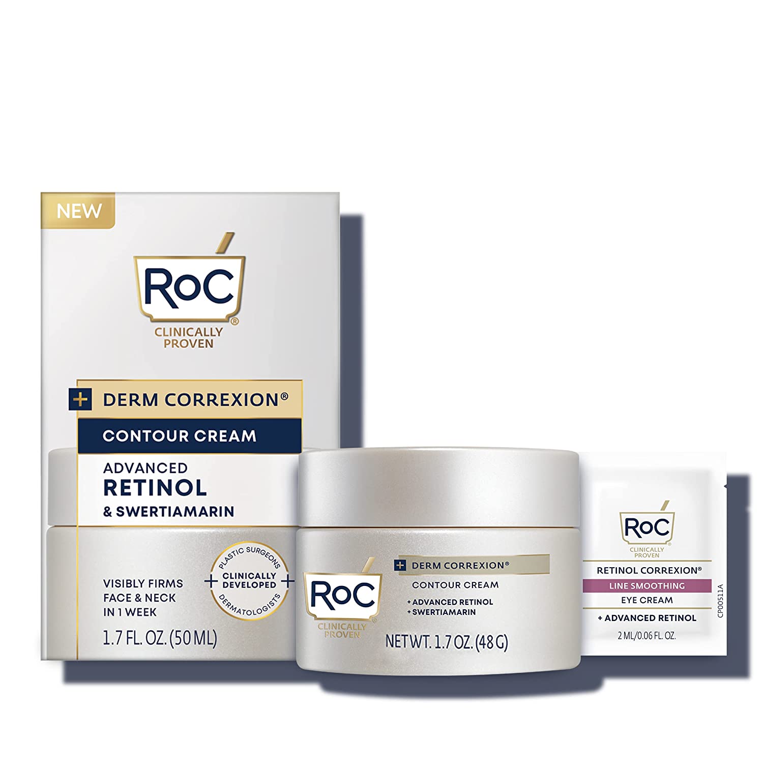 RoC Derm Correxion Neck Cream with Hyaluronic Acid and Advanced Retinol to visibly Tighten & Lift Horizontal Neck Lines, Facial Moisturiser to Contour Face, Neck and Jawline, 1.7oz