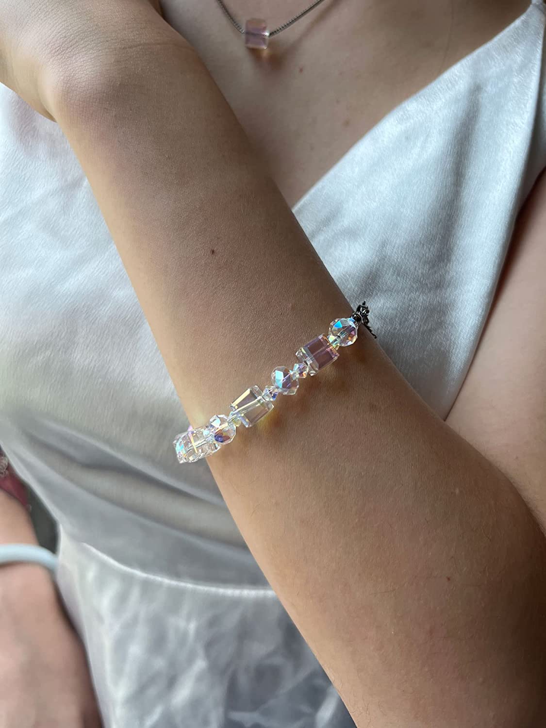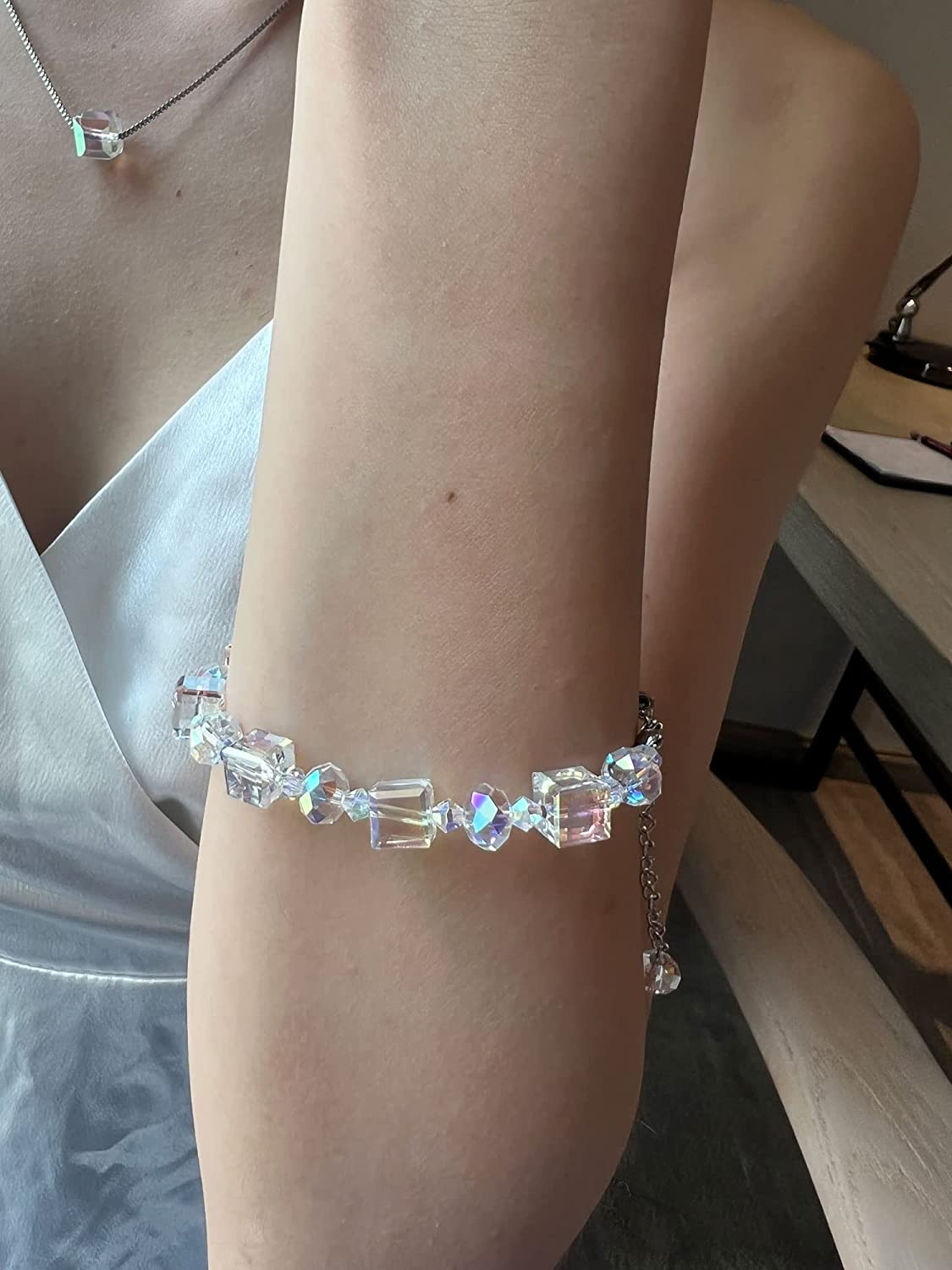 Txibikn 4 Pieces Fashion Colorful Starlight Crystal Rhinstone Pendent Necklace Earring Bracelet Jewelry Set for Women Lady Wedding Birthday Party Gift
