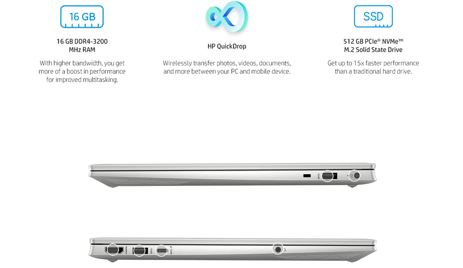 • MEMORY AND STORAGE – Enjoy up to 15x faster performance than a traditional hard drive with 512 GB PCIe NVMe M.2 SSD storage (4) and experience improved multitasking with higher bandwidth thanks to 16 GB of RAM