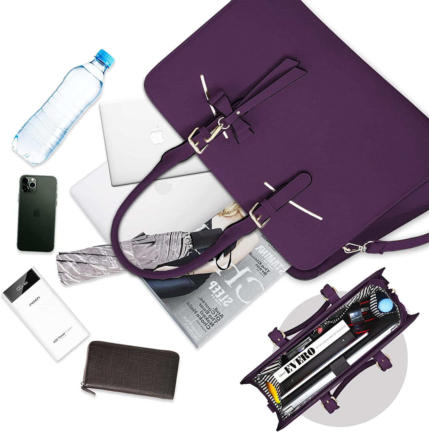 TOPDesign Laptop Bag for Women, Waterproof PU Leather Work Briefcase fits 15.6 Inch Computer, Large Tote Messenger Shoulder Bag, Stylish Business Purse Handbag Satchel (Purple)