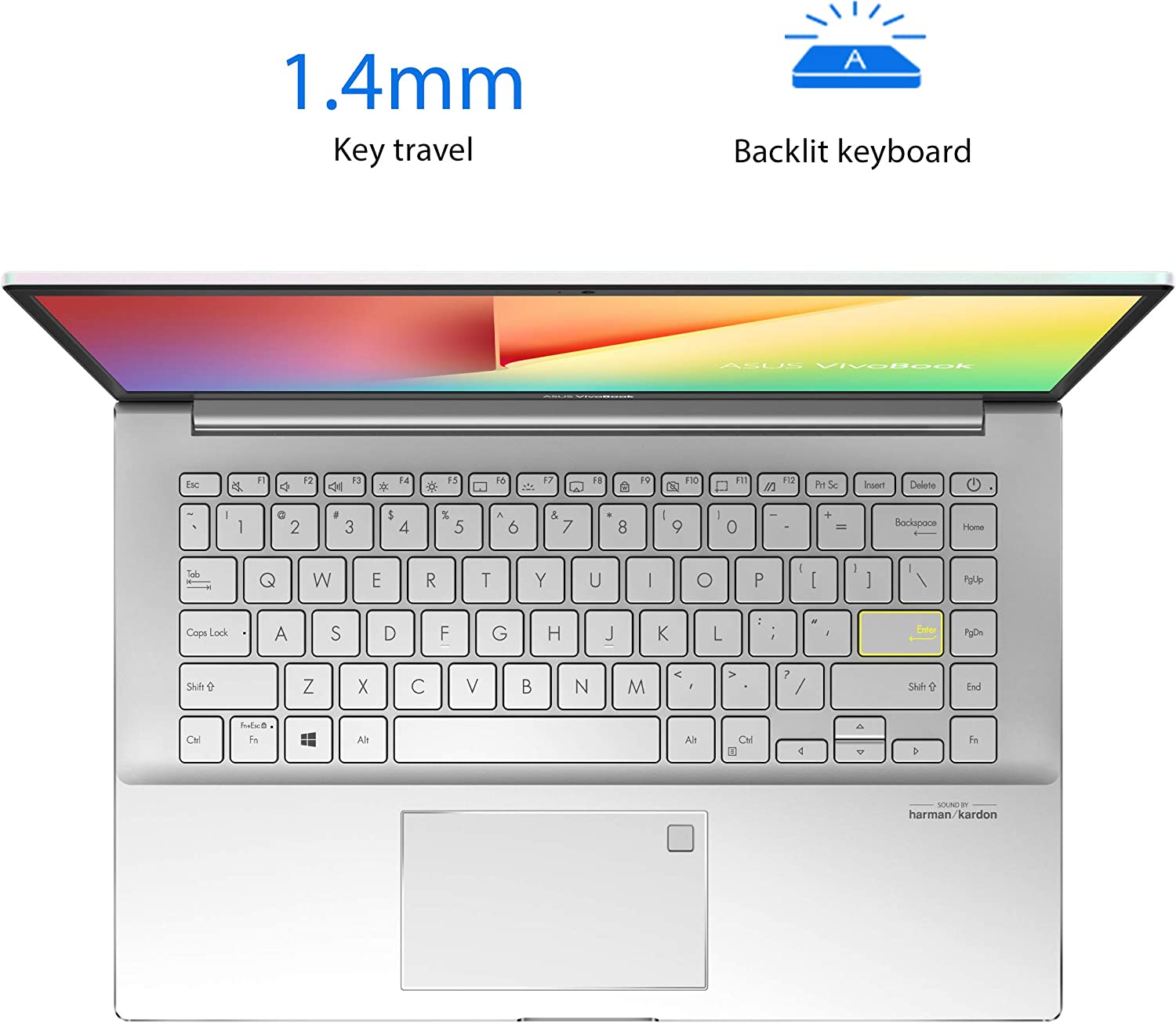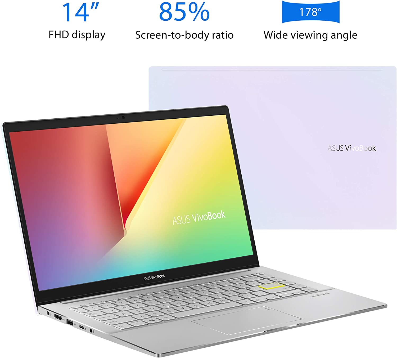 ASUS VivoBook S14 S433 Thin and Light Laptop, 14” FHD Display, Intel Core i5-1135G7 CPU, 8GB DDR4 RAM, 512GB SSD, Thunderbolt 3, Wi-Fi 6, Windows 10, AI Noise-Cancellation, Dreamy White, S433EA-DH51