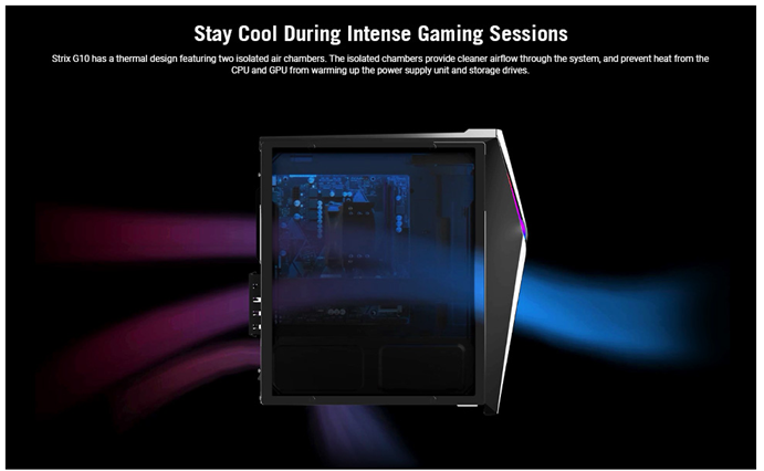 UNMATCHED DURABILITY – The Strix G10 has undergone a series of rigorous quality tests, including drop and vibration, thermal, noise, and voltage testing to ensure it meets our exacting standards, and surpasses other gaming pc desktops.
