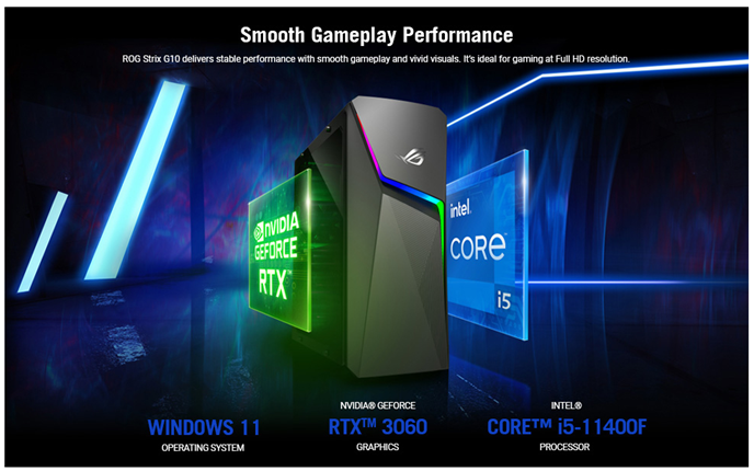 ROG Strix G10 Gaming Desktop PC, Intel Core i5-11400F, GeForce RTX 3060, 16GB DDR4 RAM, 512GB PCIe SSD, Wi-Fi 5, Windows 11 Home, G10CE-US564